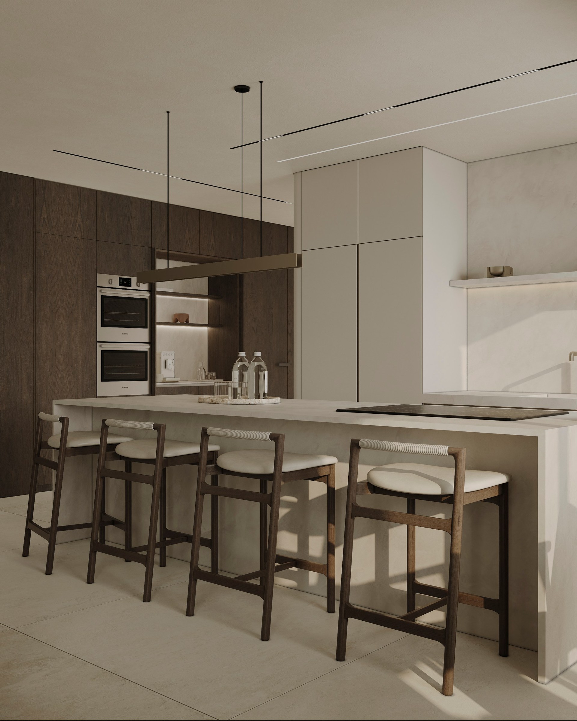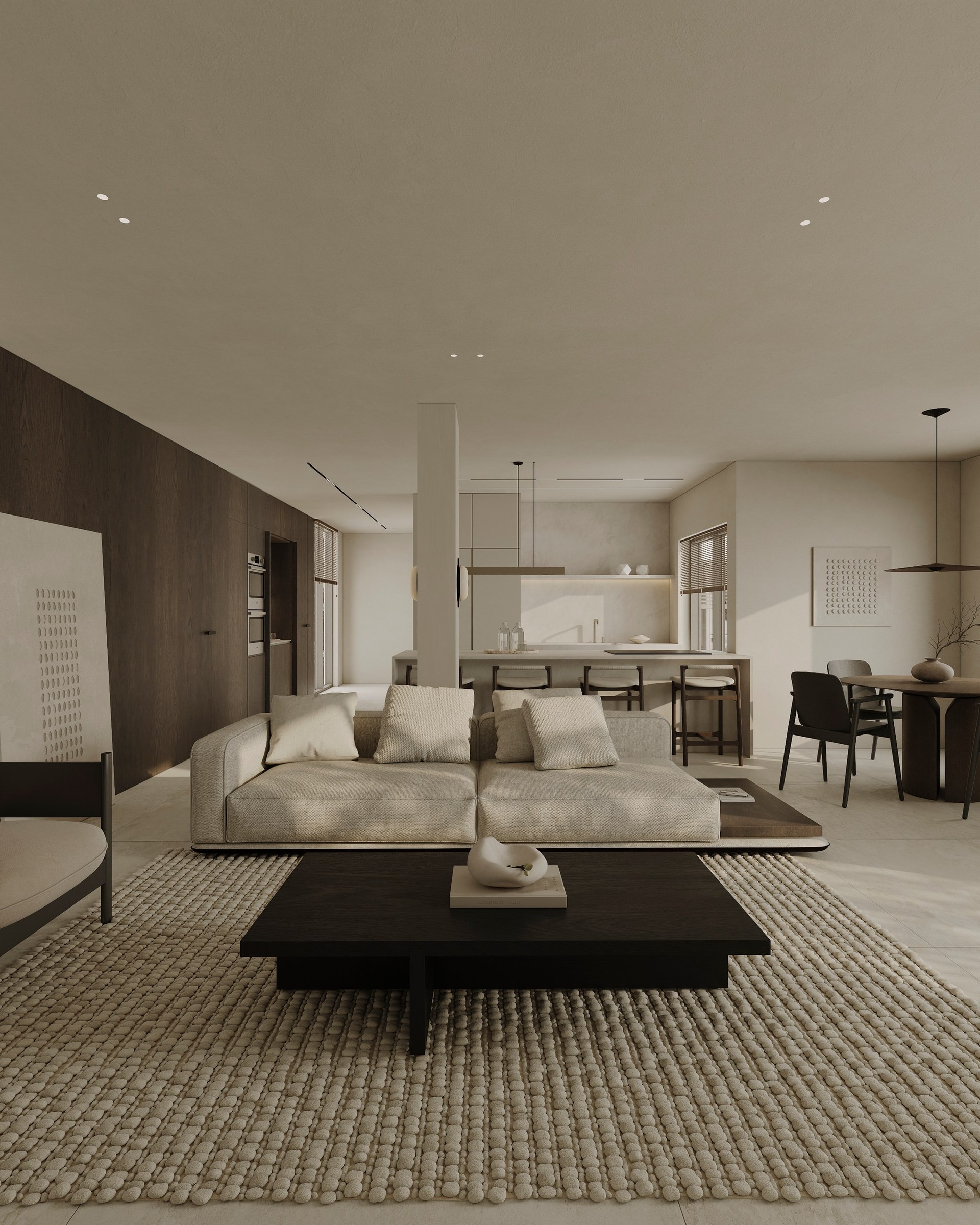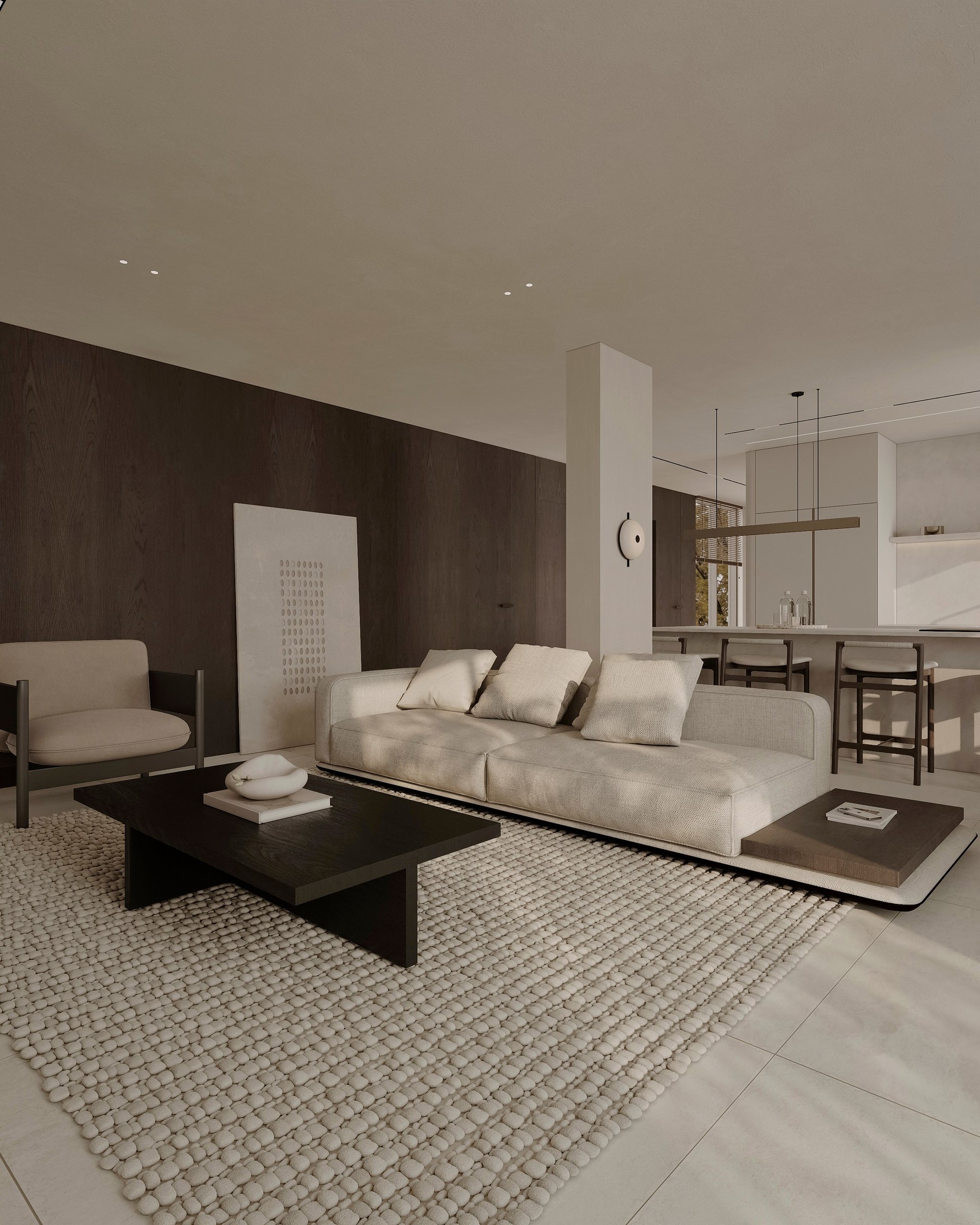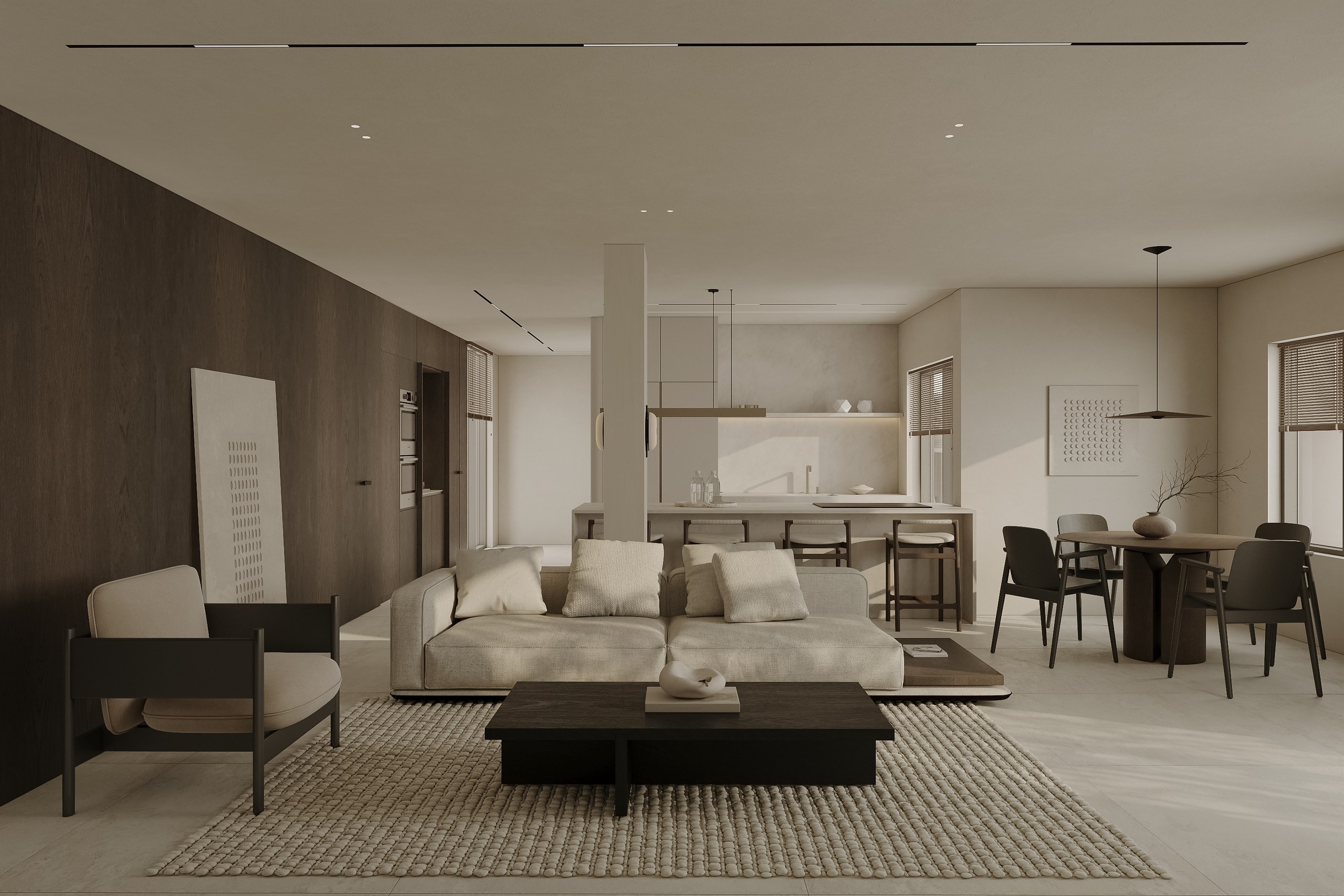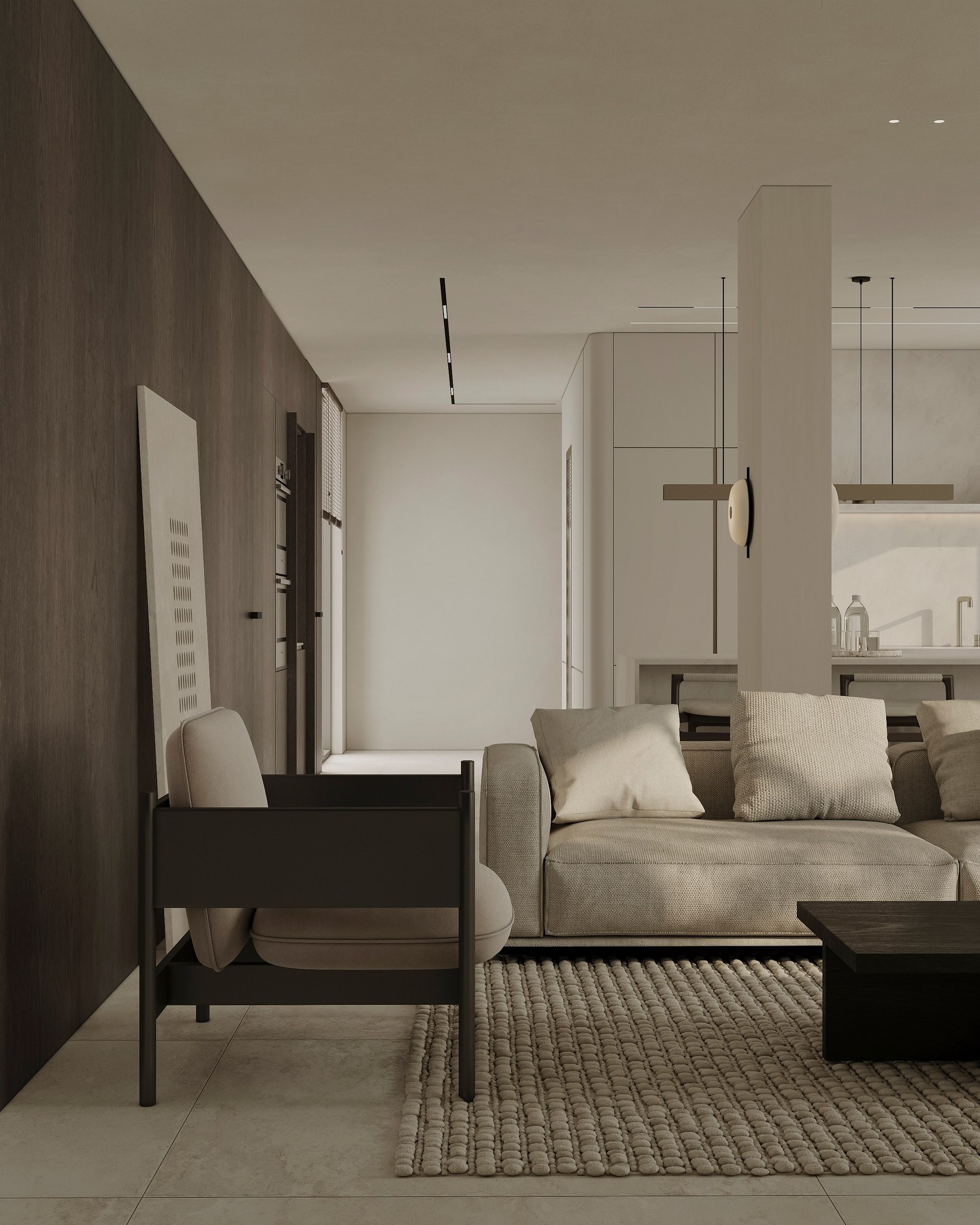 Interior visualization project featuring sophisticated contemporary spaces with elegant materials and refined aesthetics.