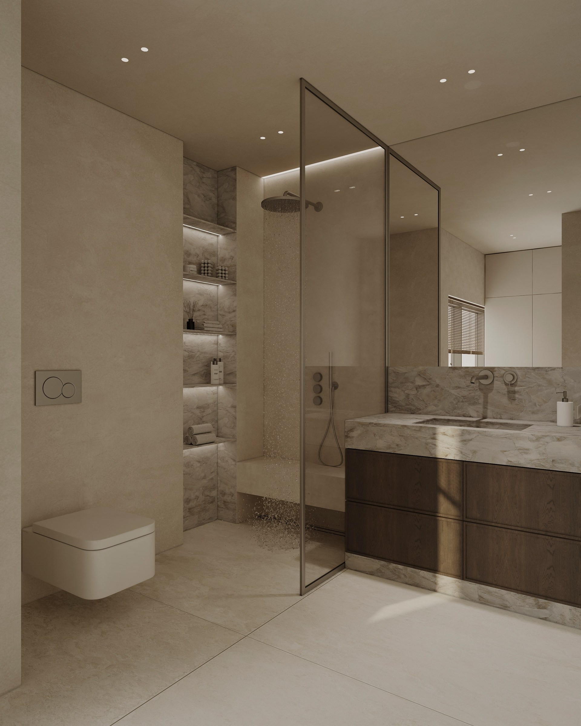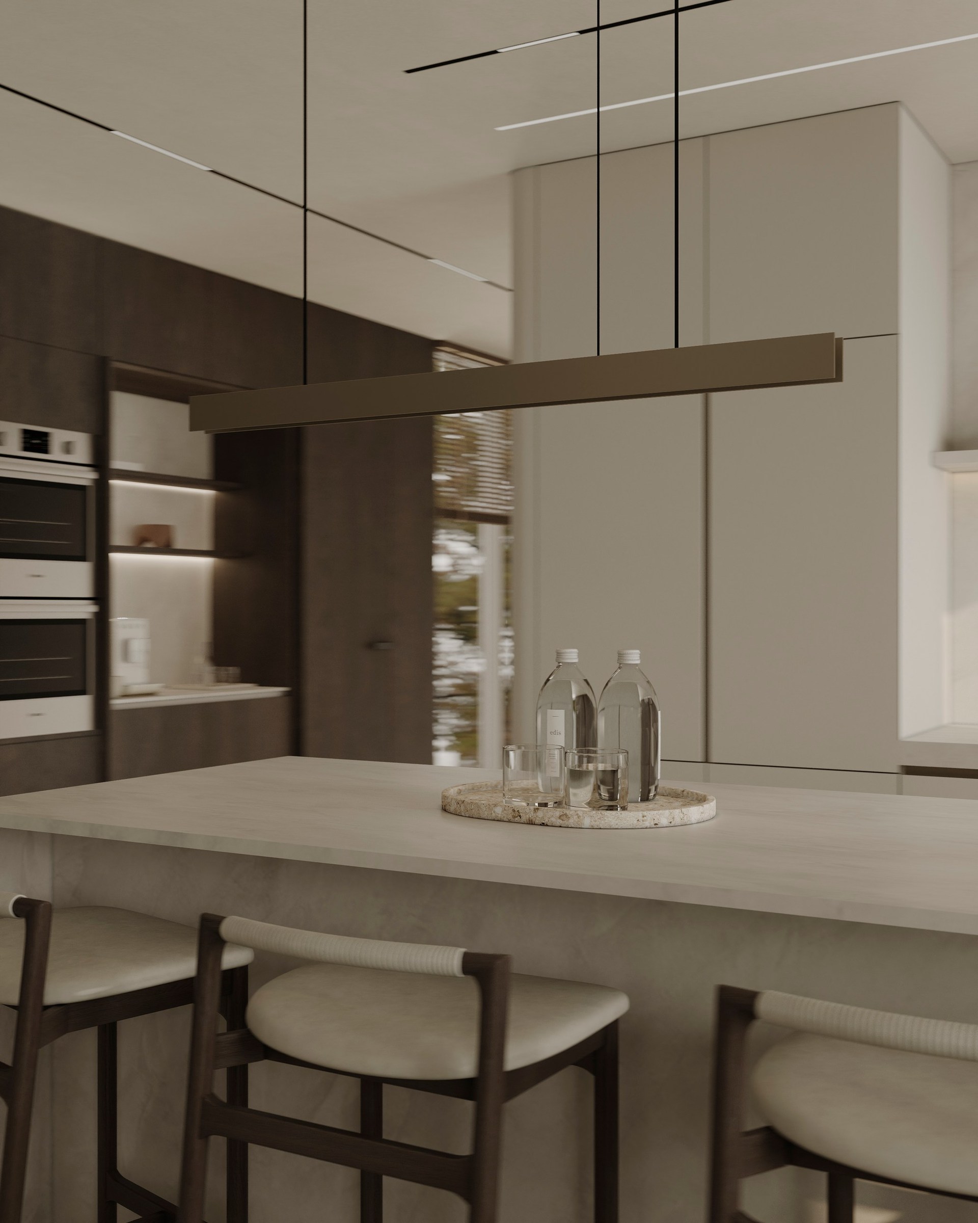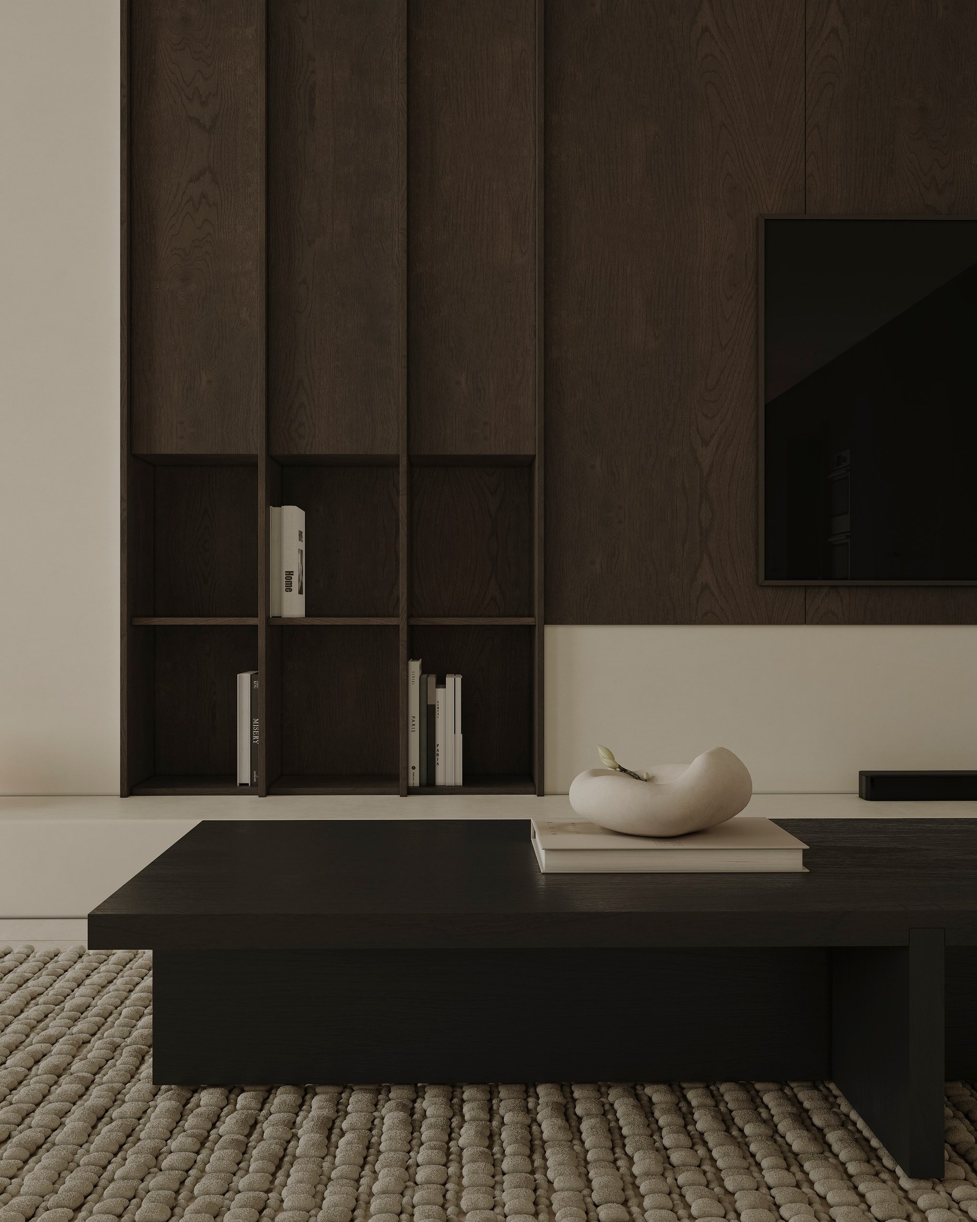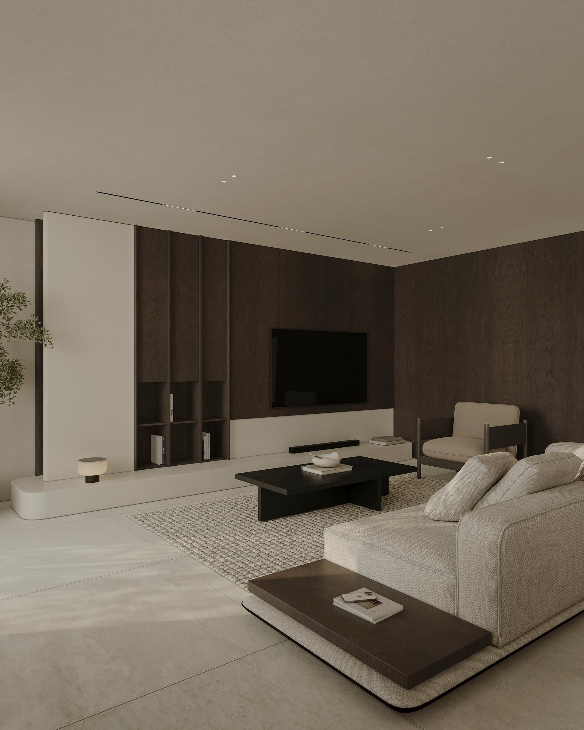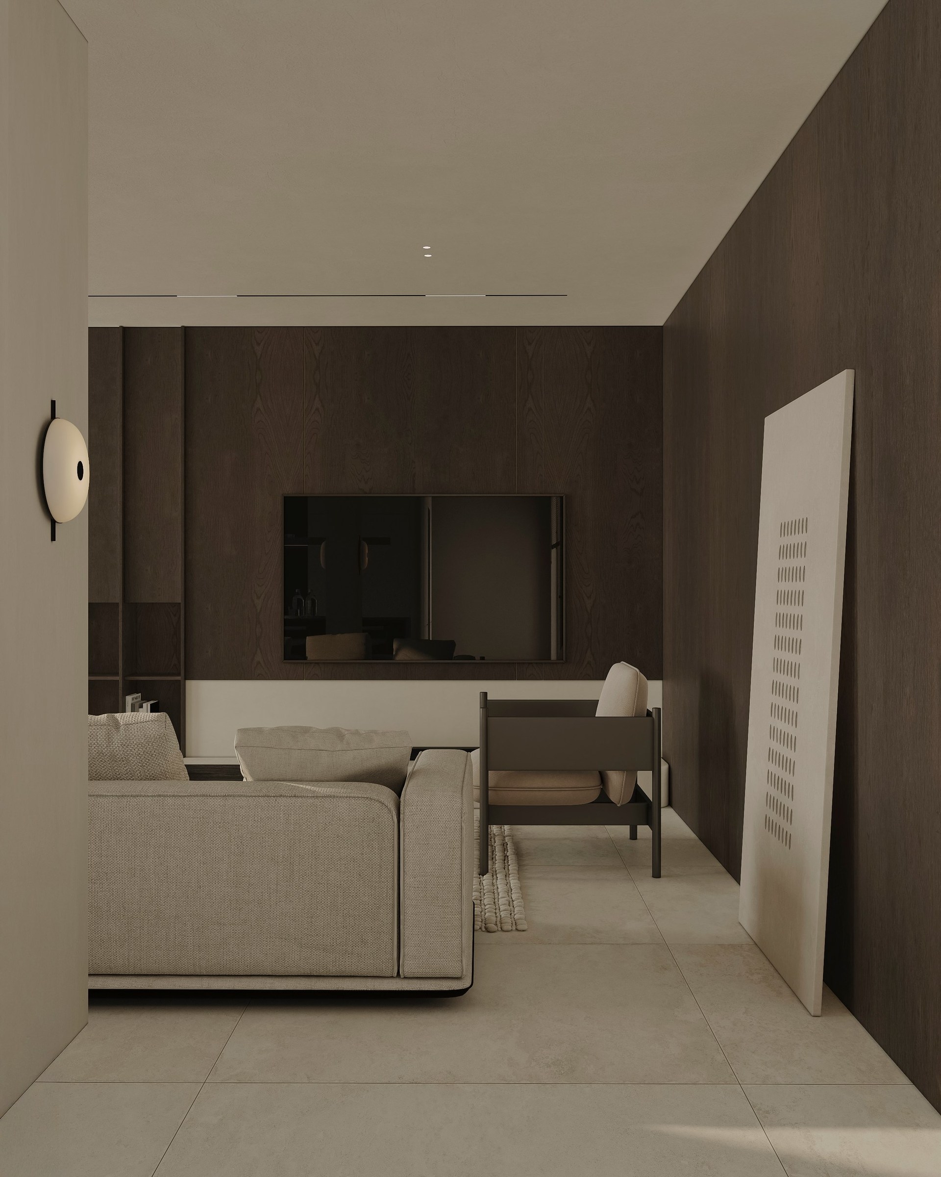 Interior visualization project featuring sophisticated contemporary spaces with elegant materials and refined aesthetics.