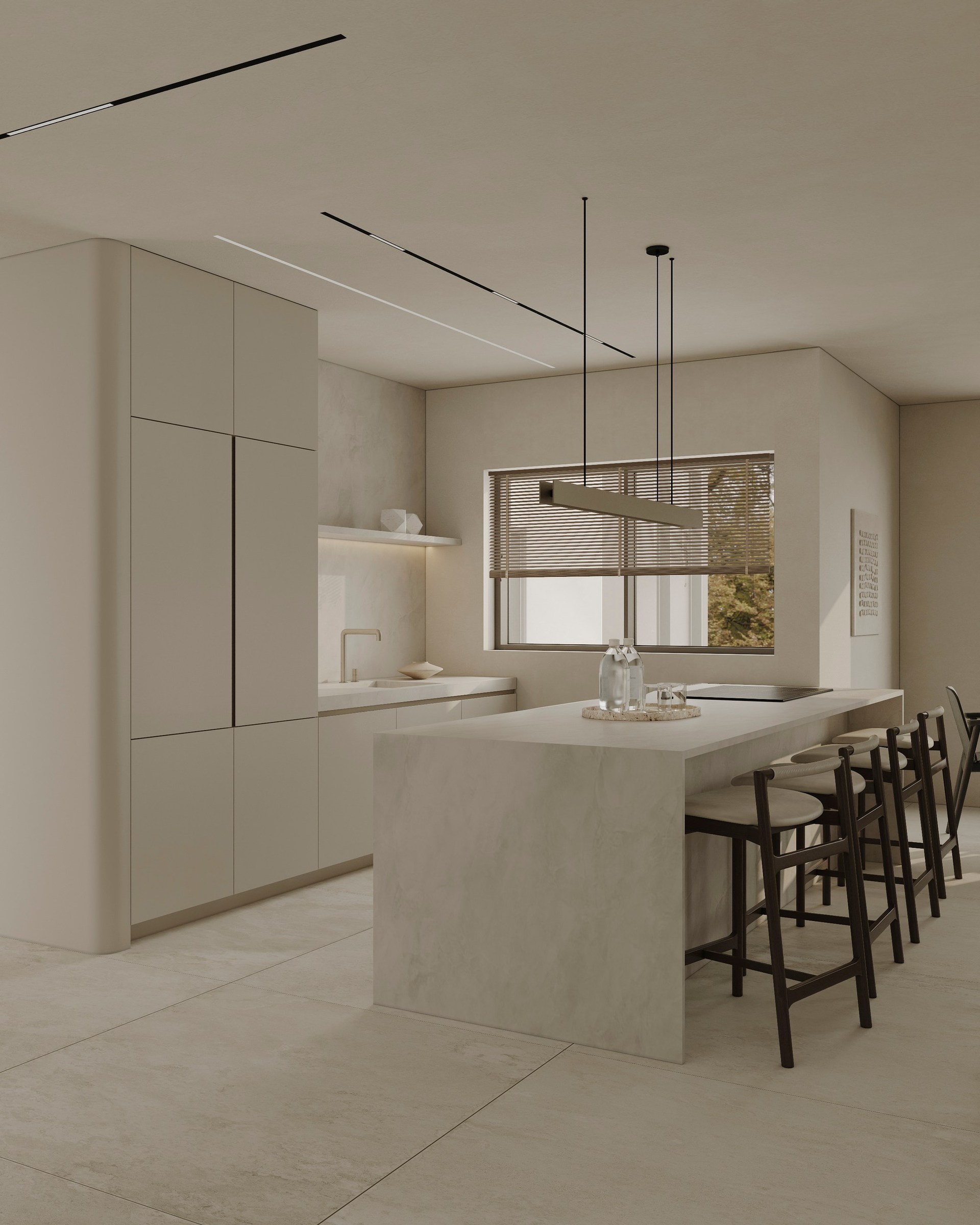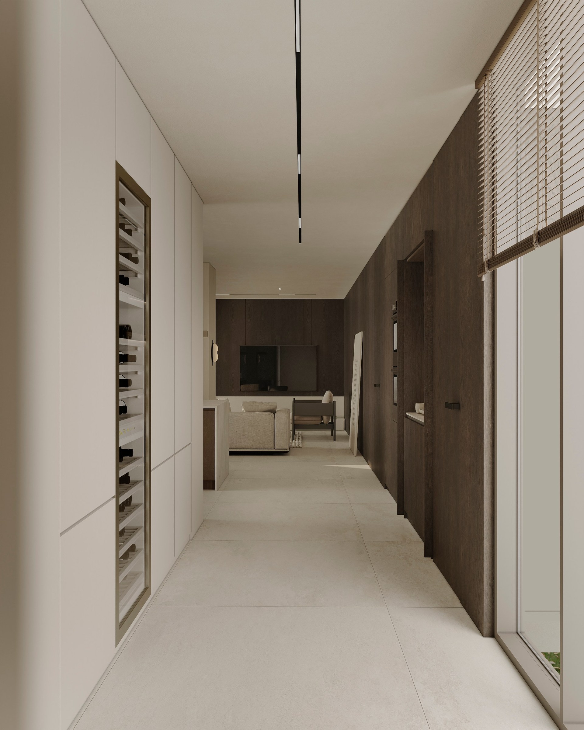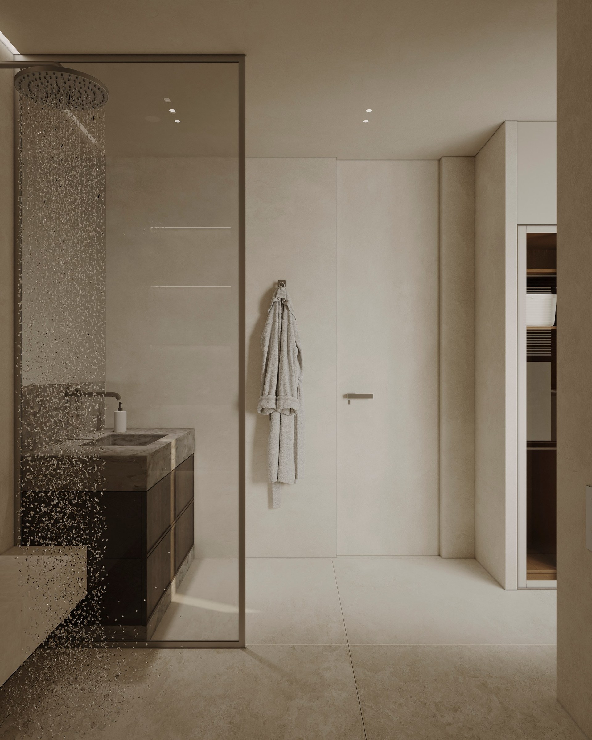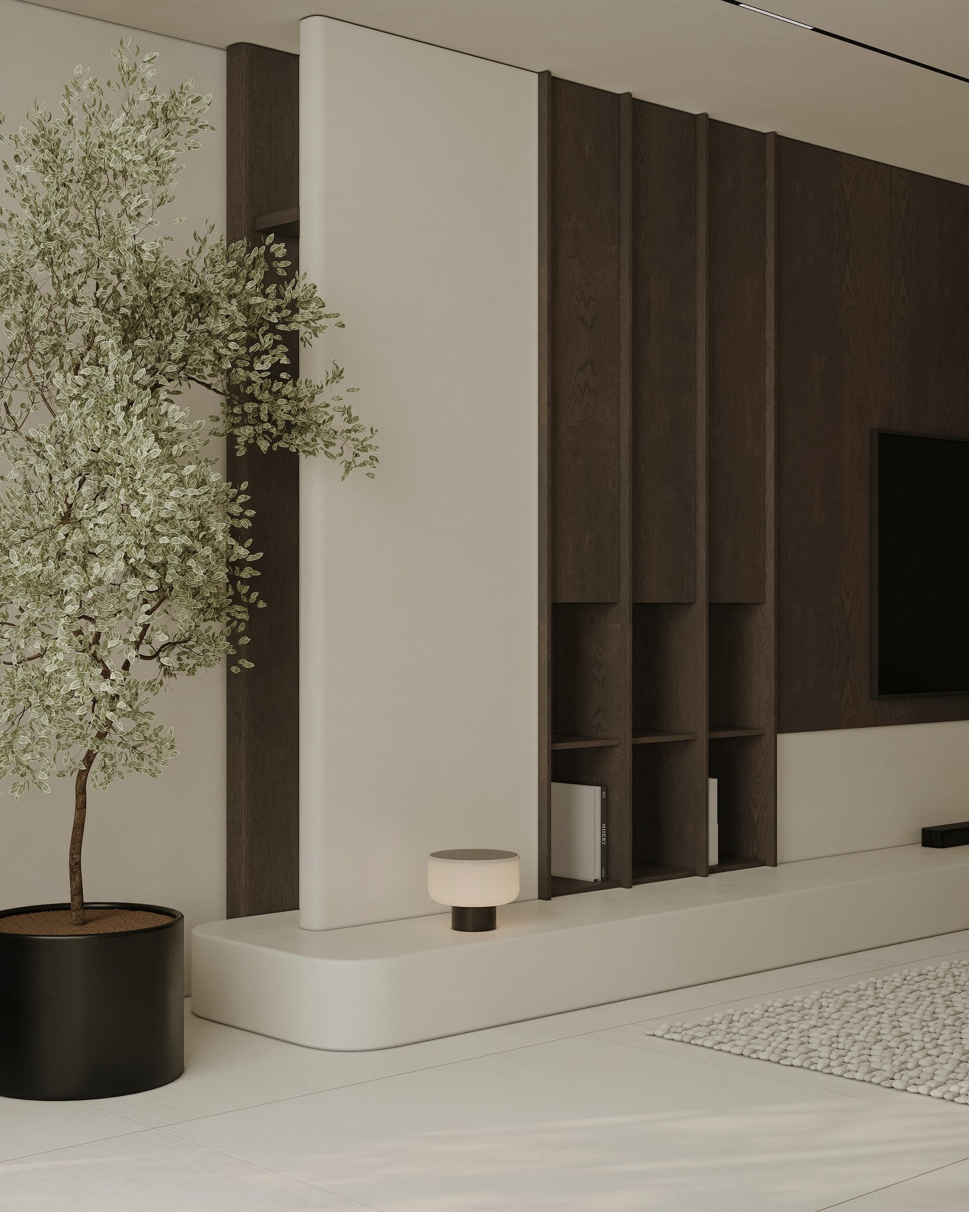Interior visualization project featuring sophisticated contemporary spaces with elegant materials and refined aesthetics.