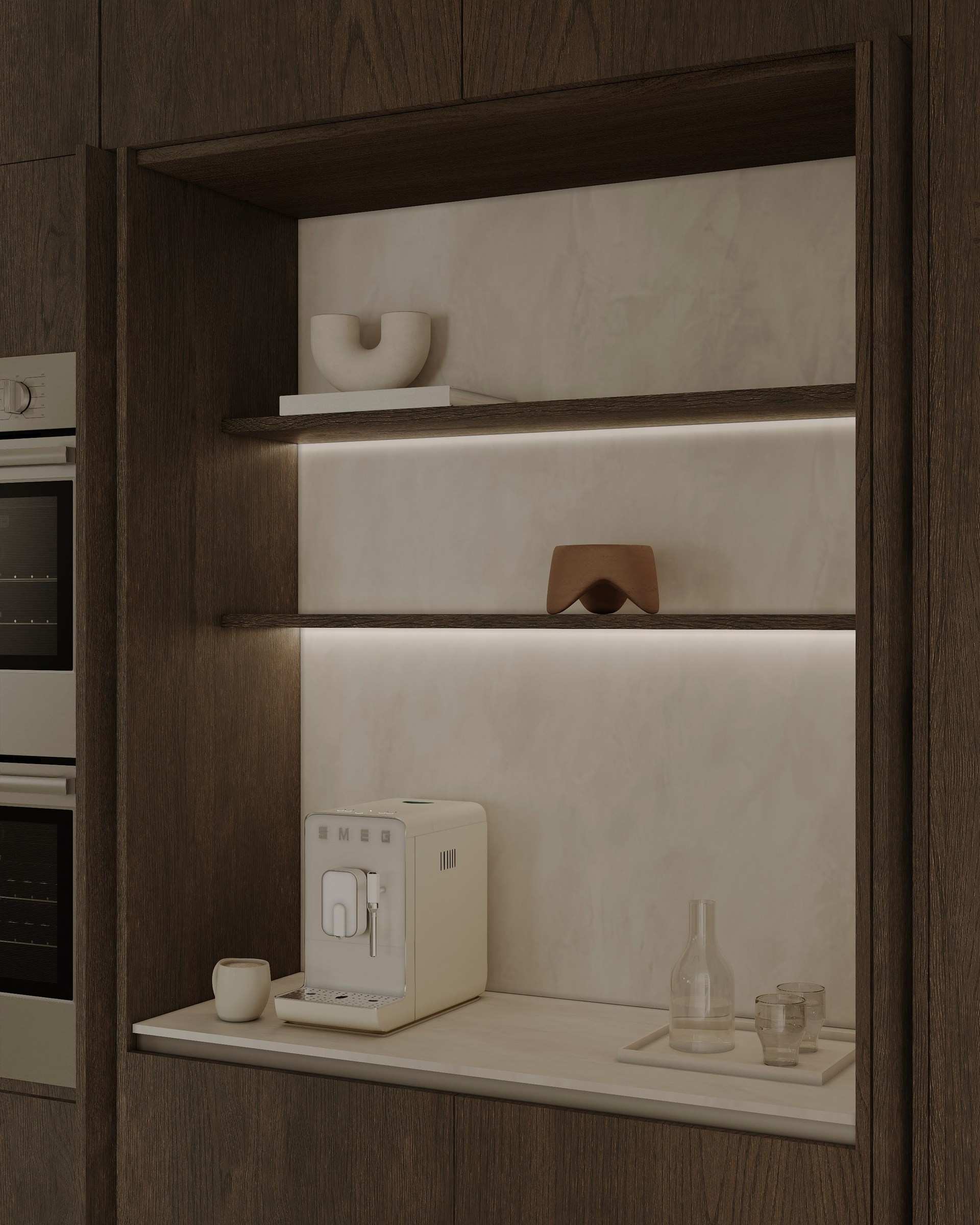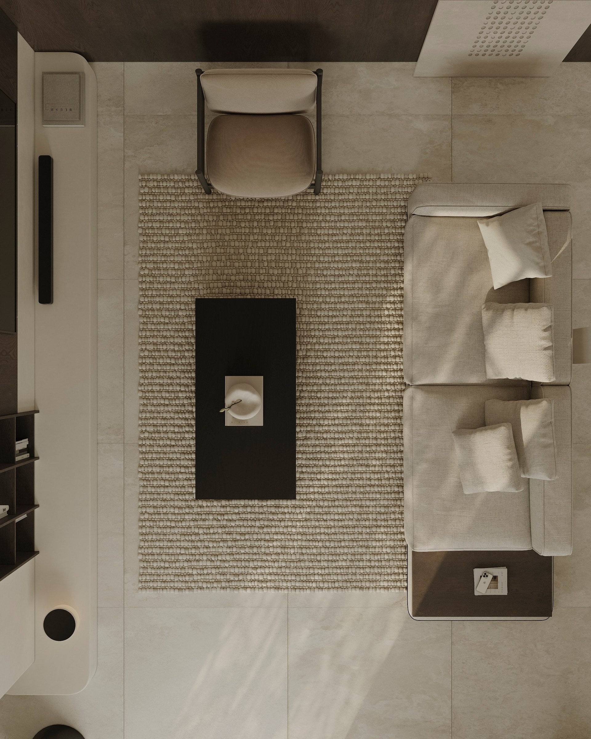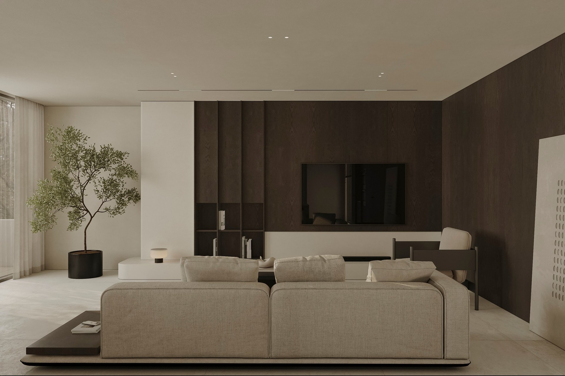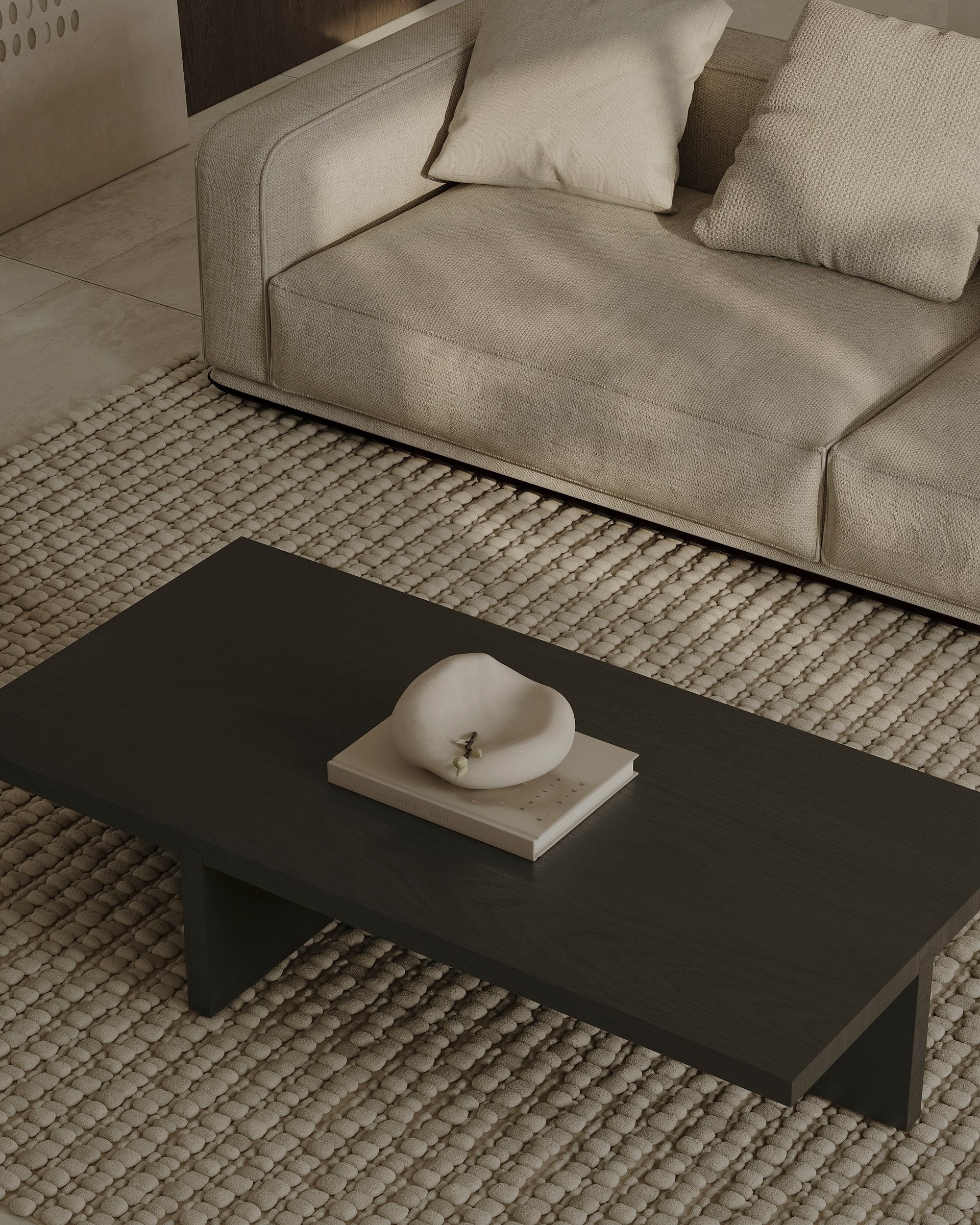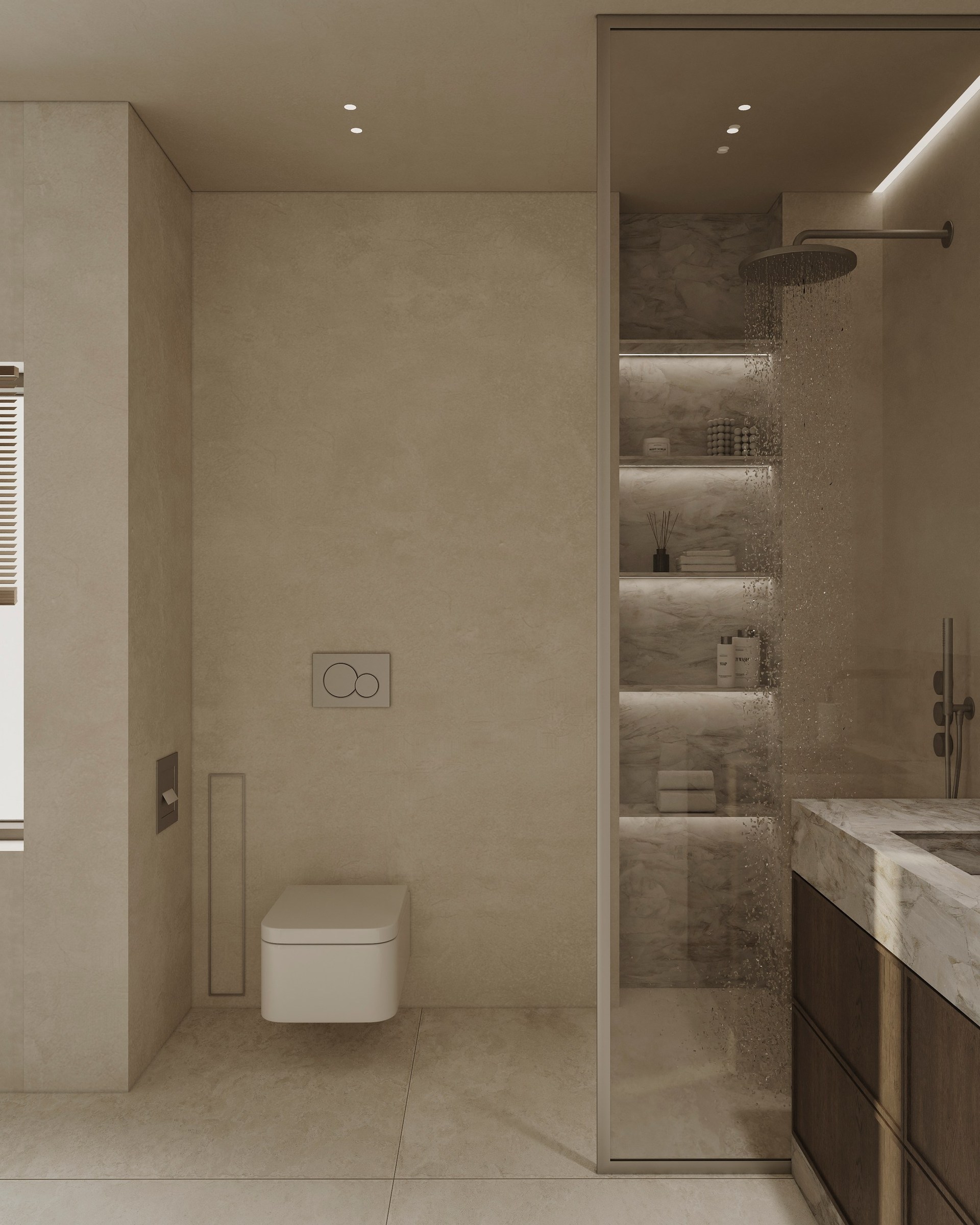 Interior visualization project featuring sophisticated contemporary spaces with elegant materials and refined aesthetics.