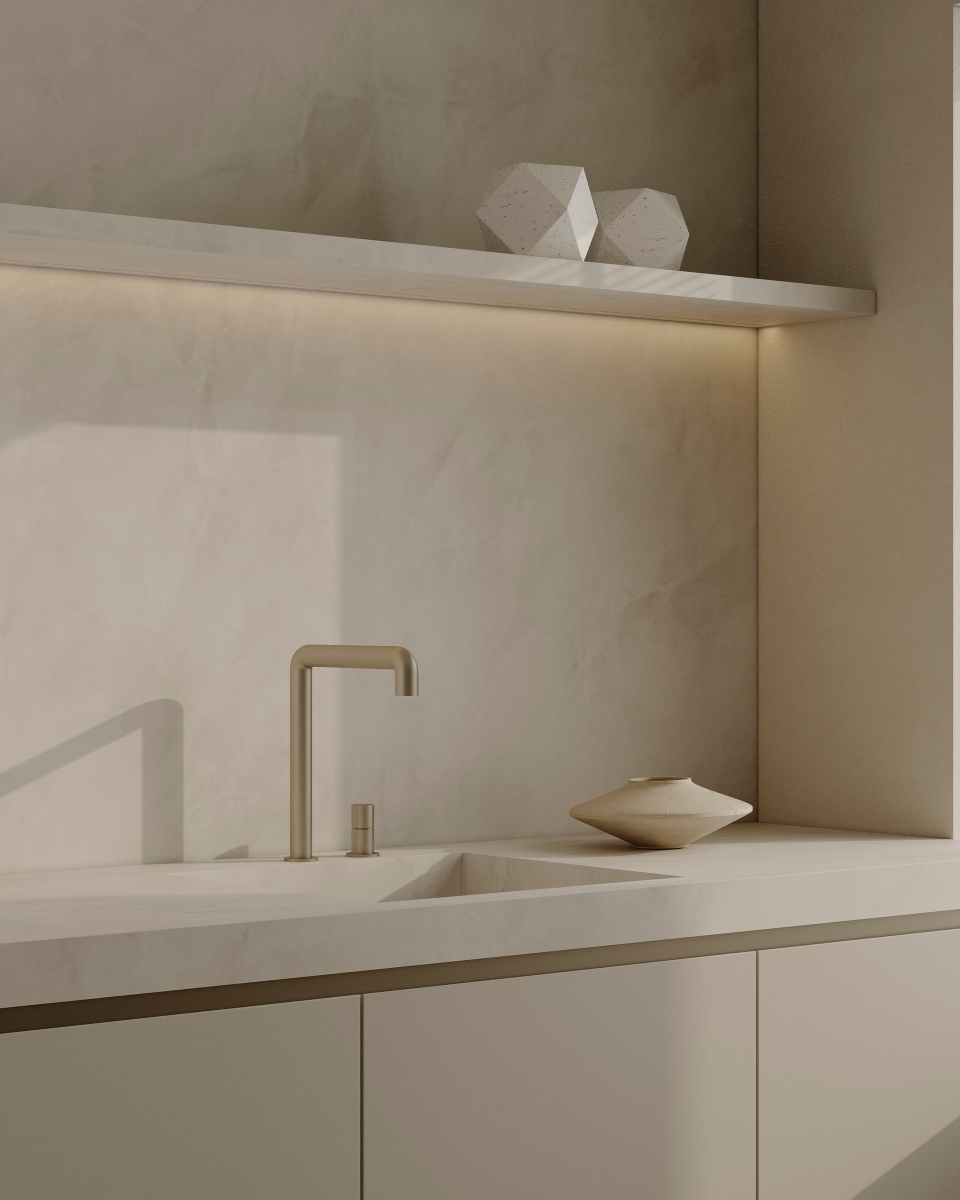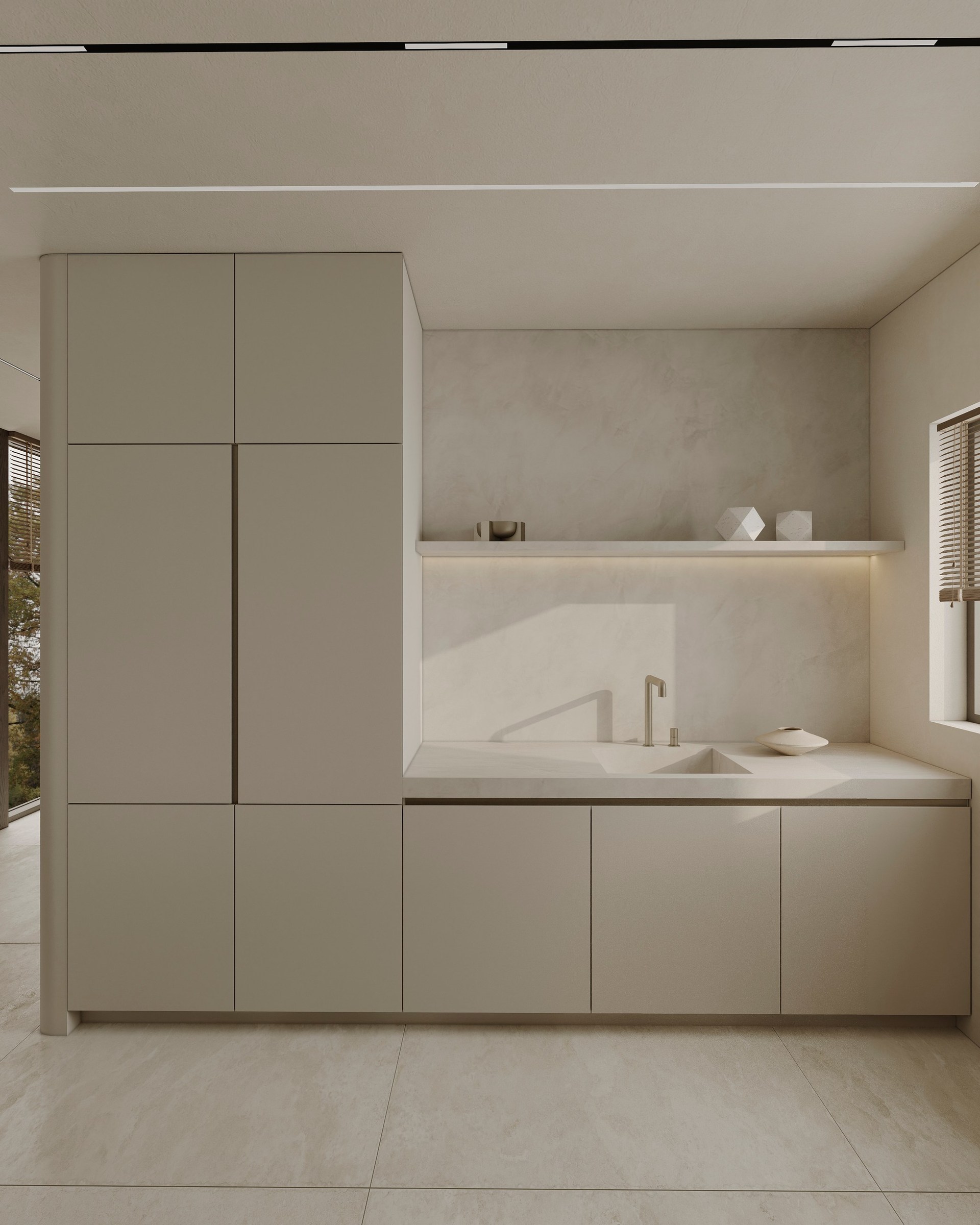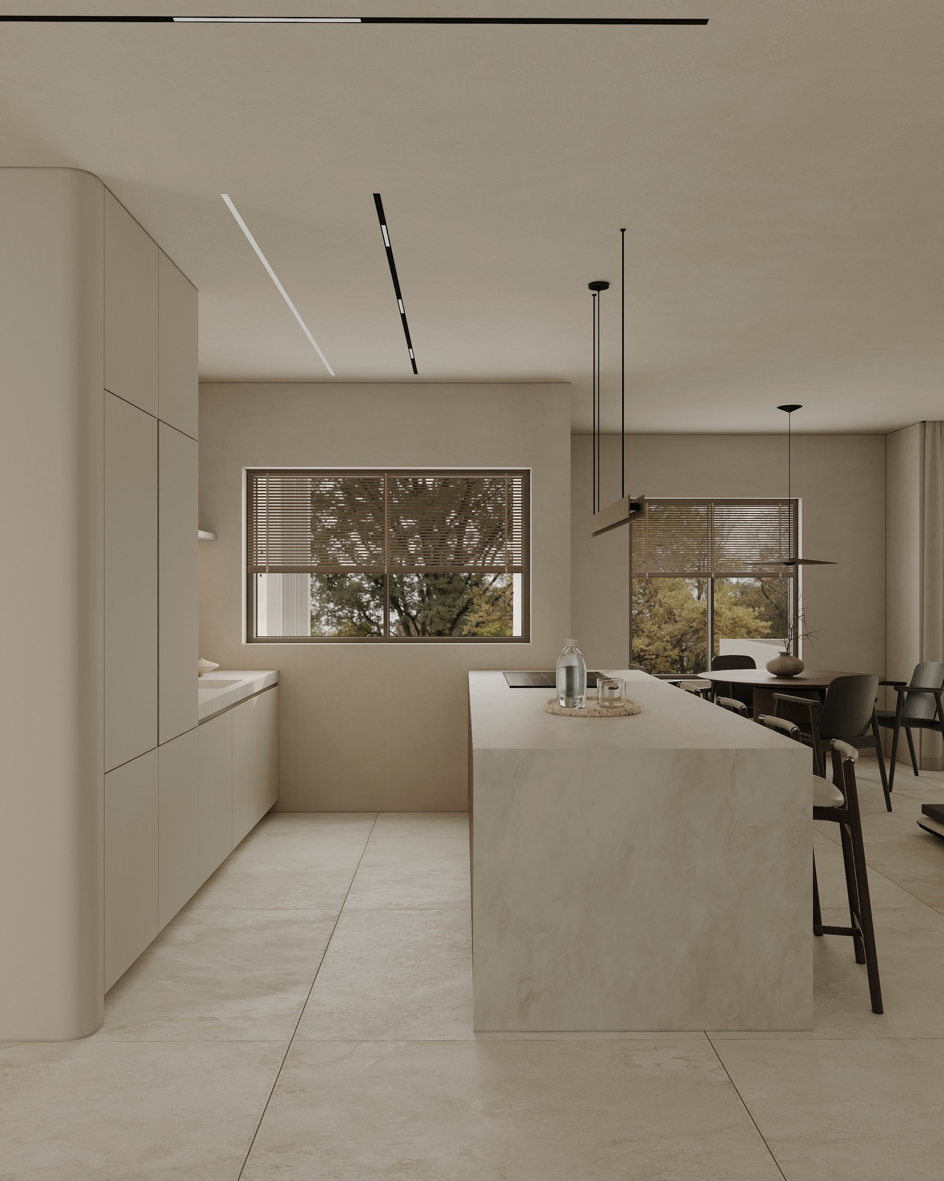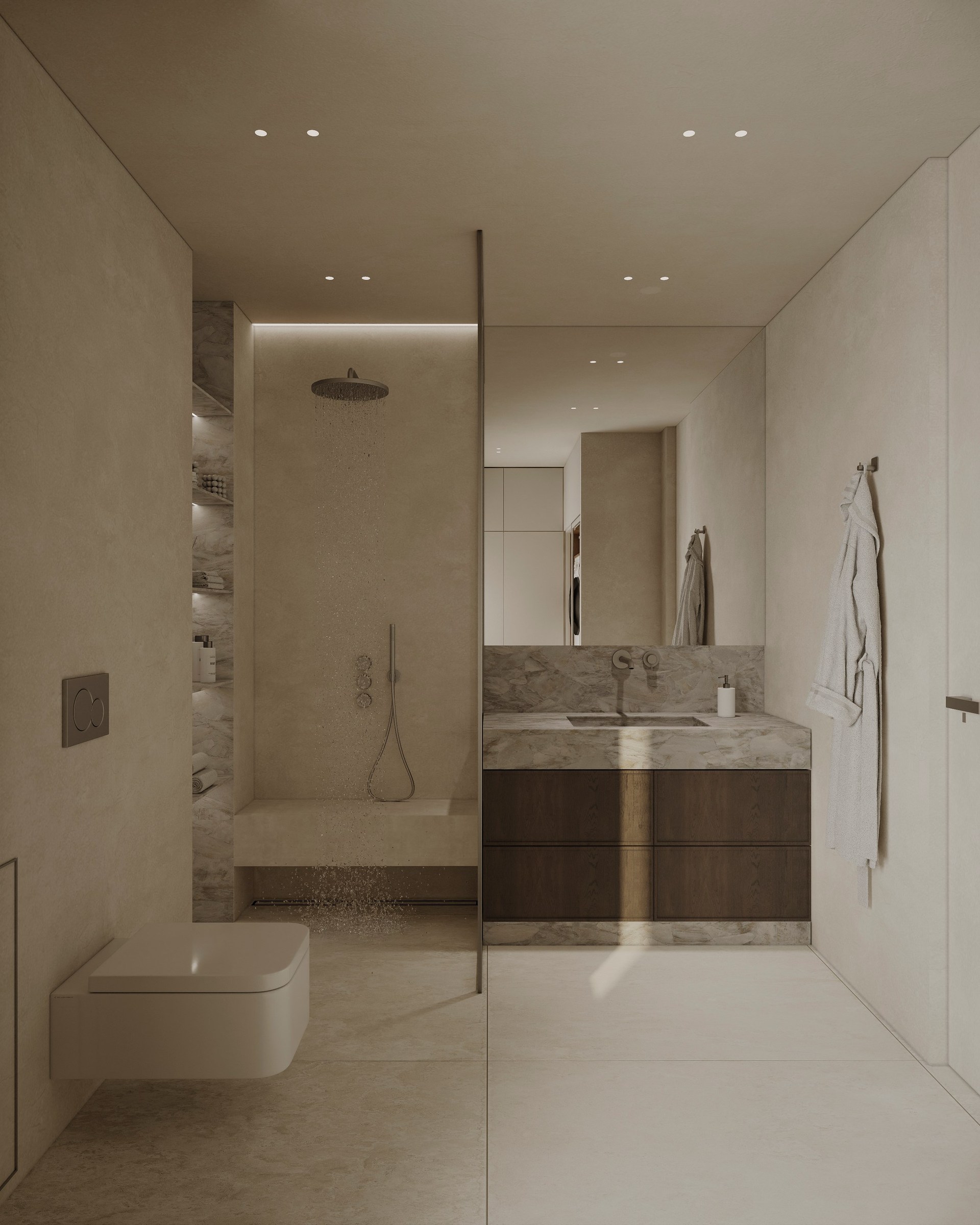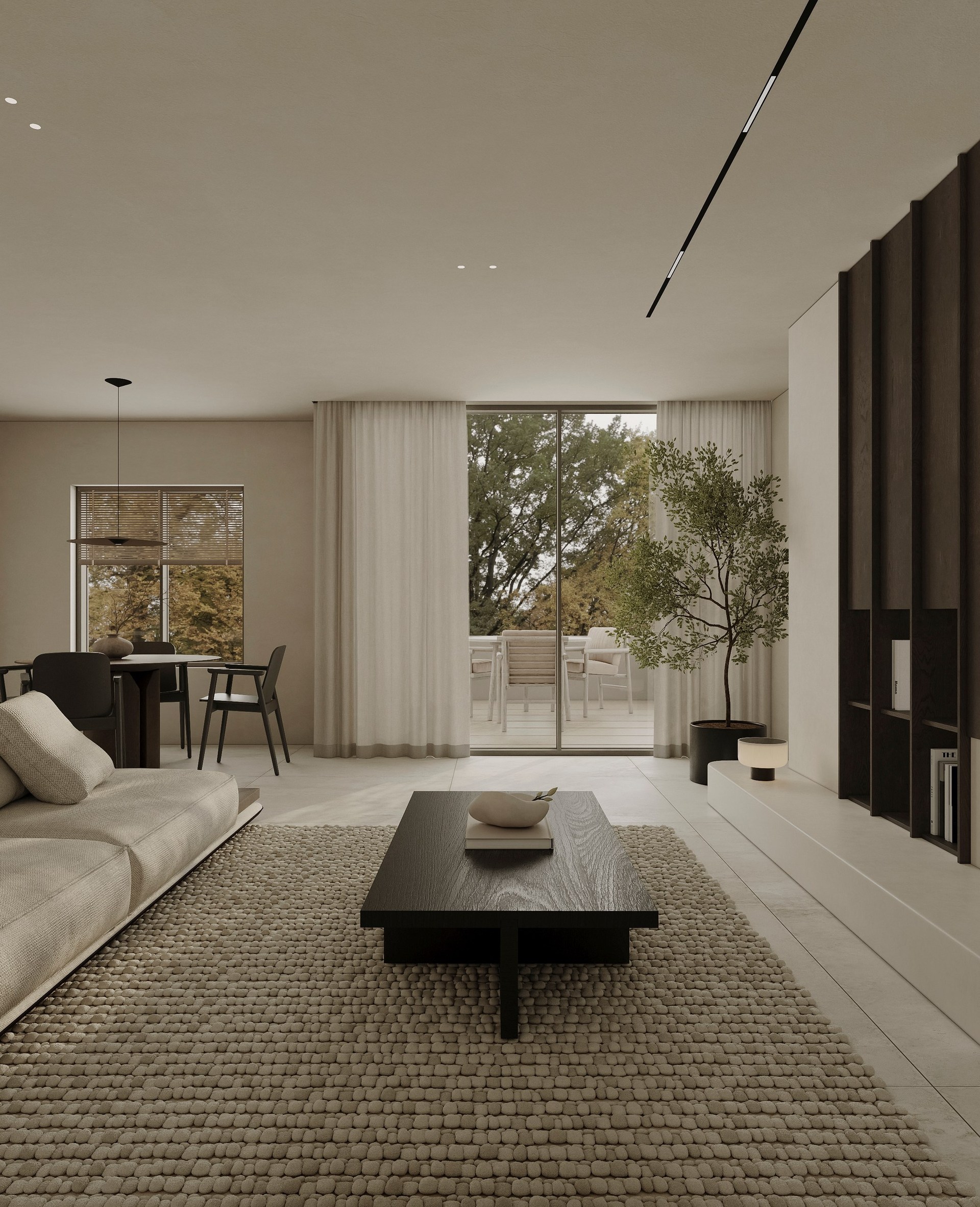 Interior visualization project featuring sophisticated contemporary spaces with elegant materials and refined aesthetics.