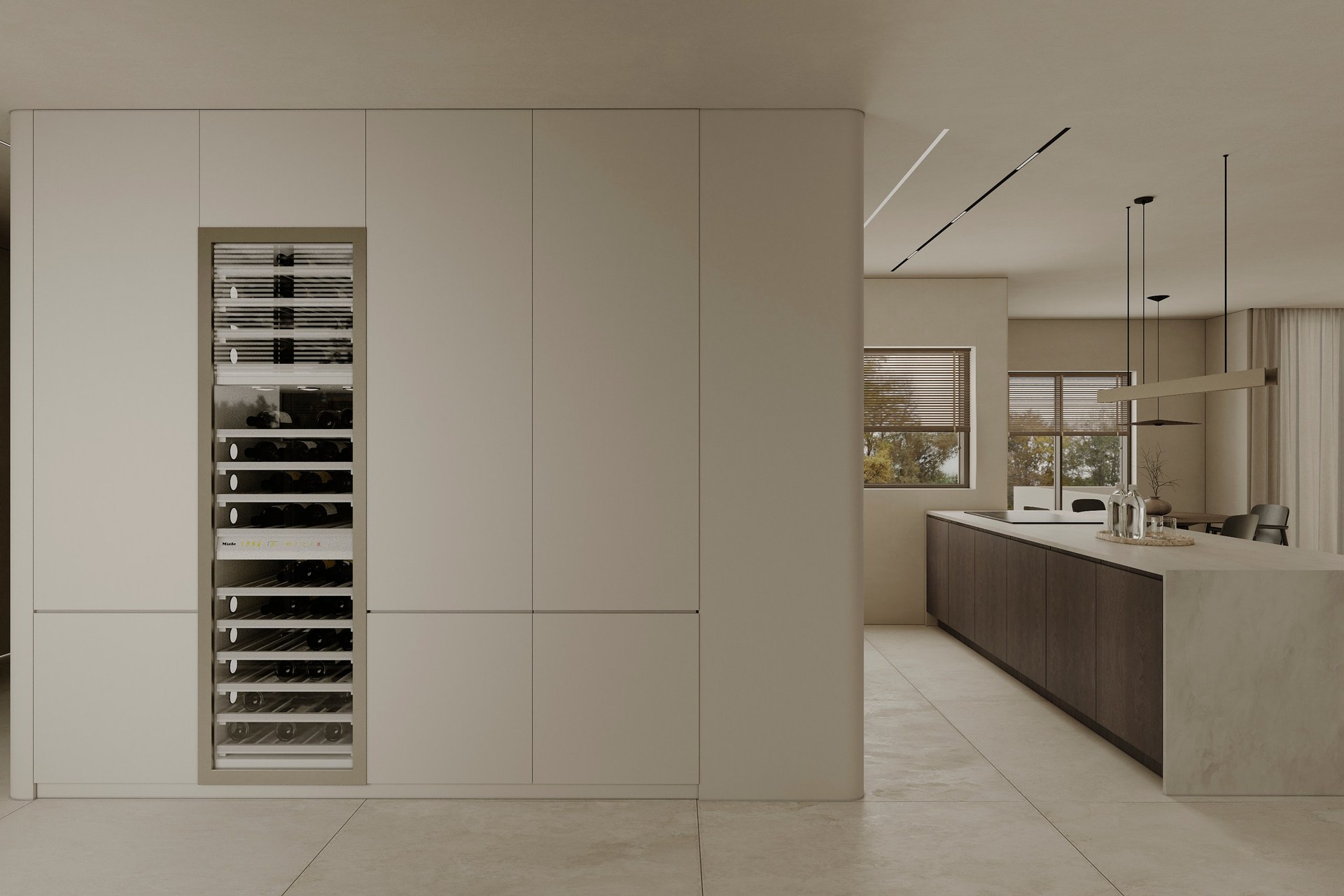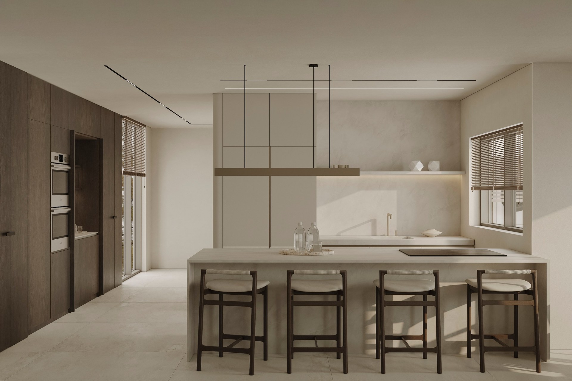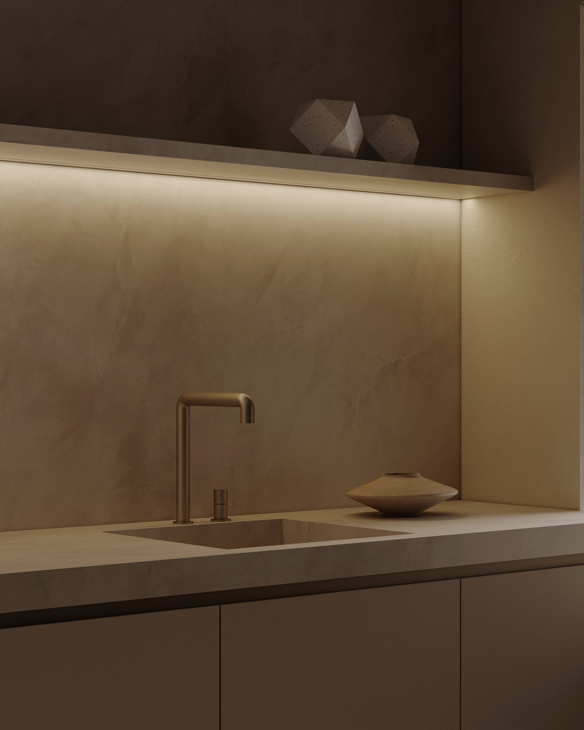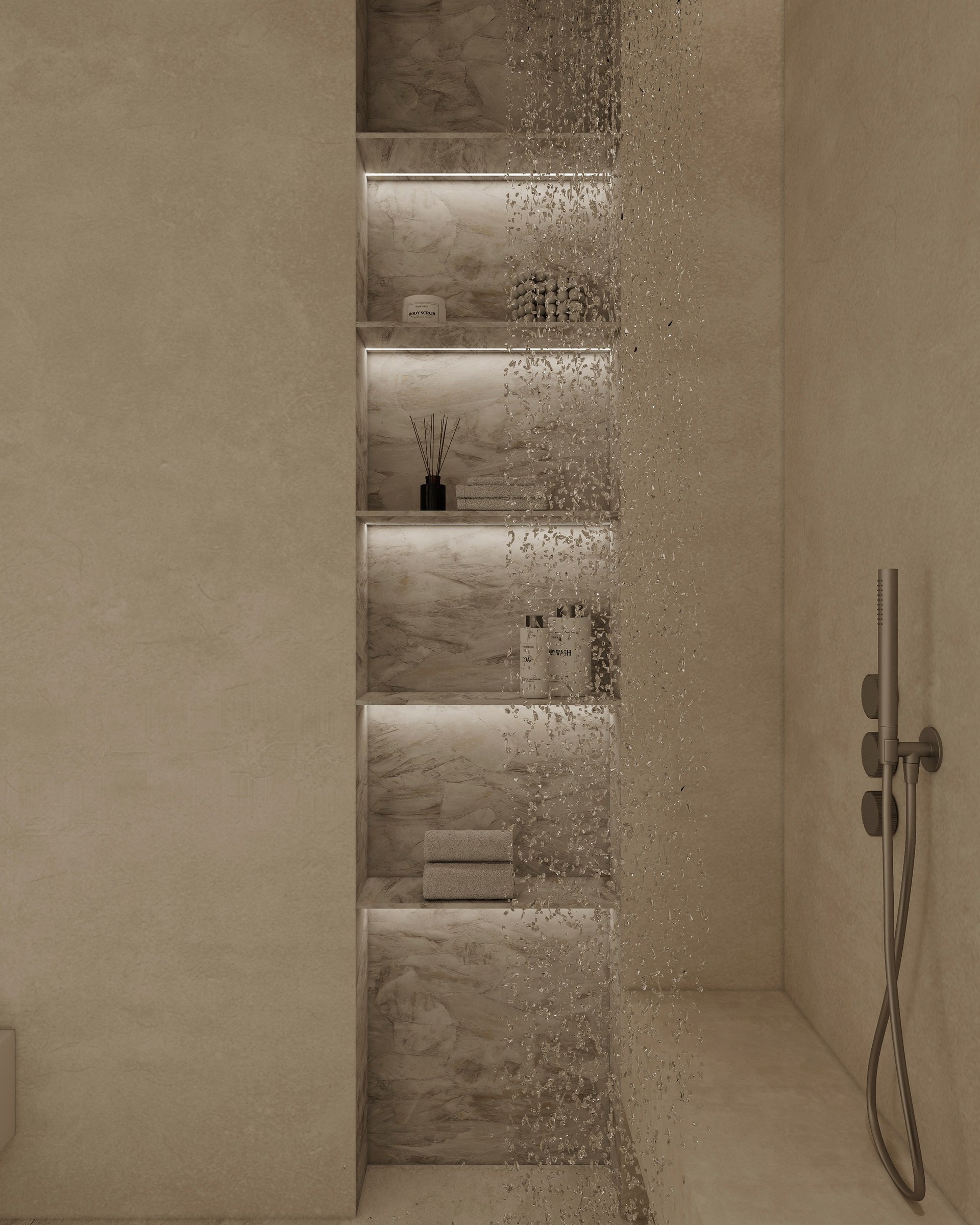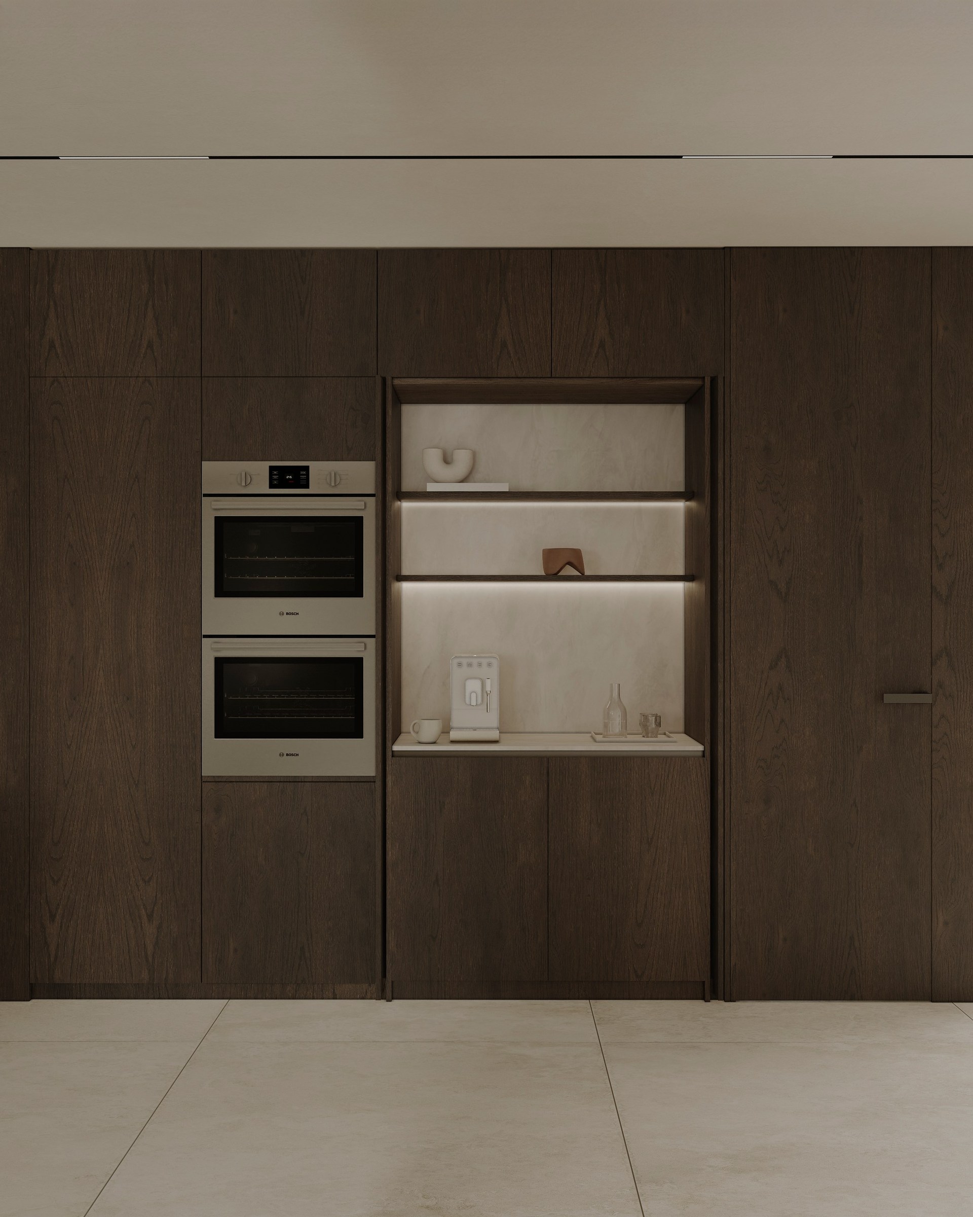 Interior visualization project featuring sophisticated contemporary spaces with elegant materials and refined aesthetics.
