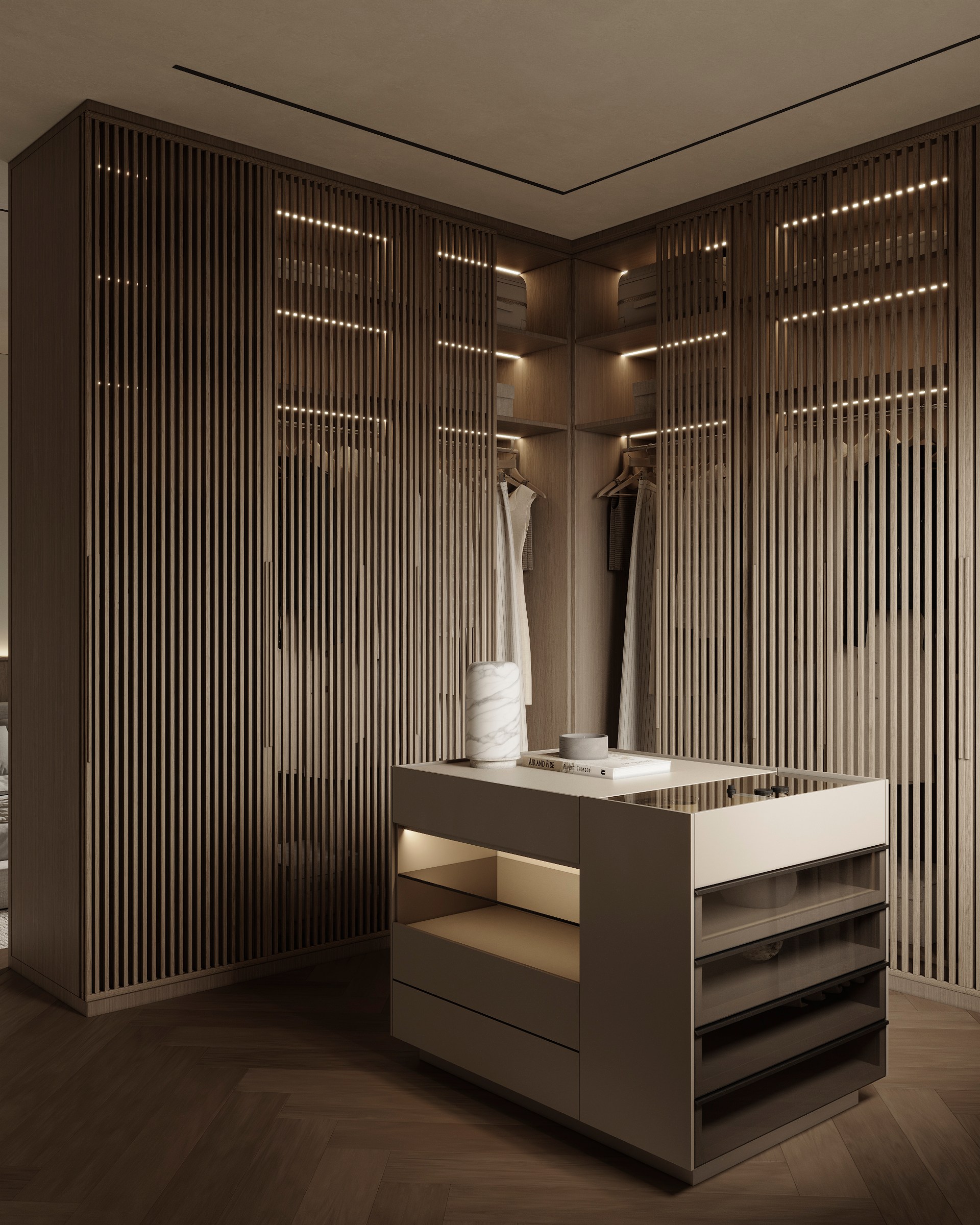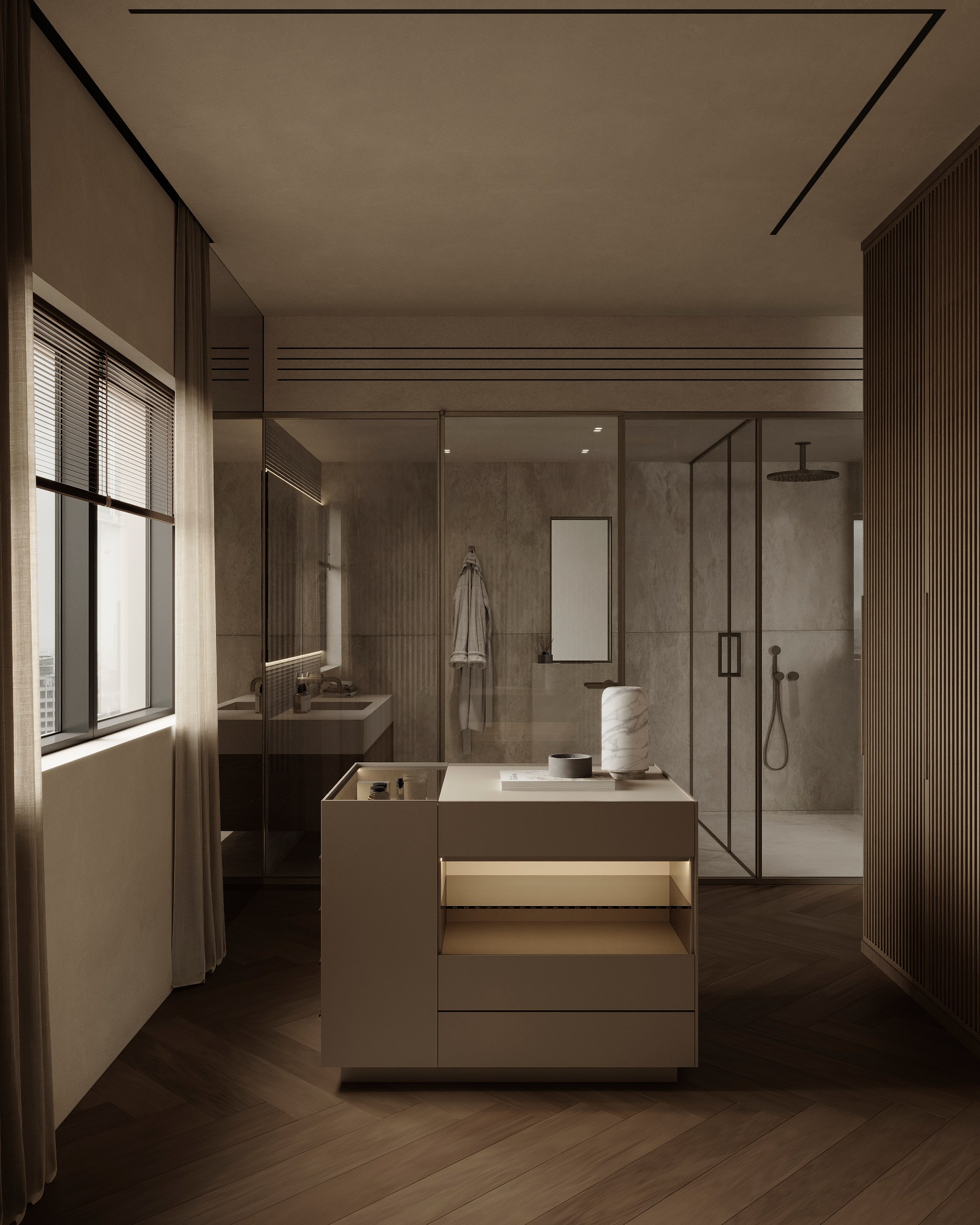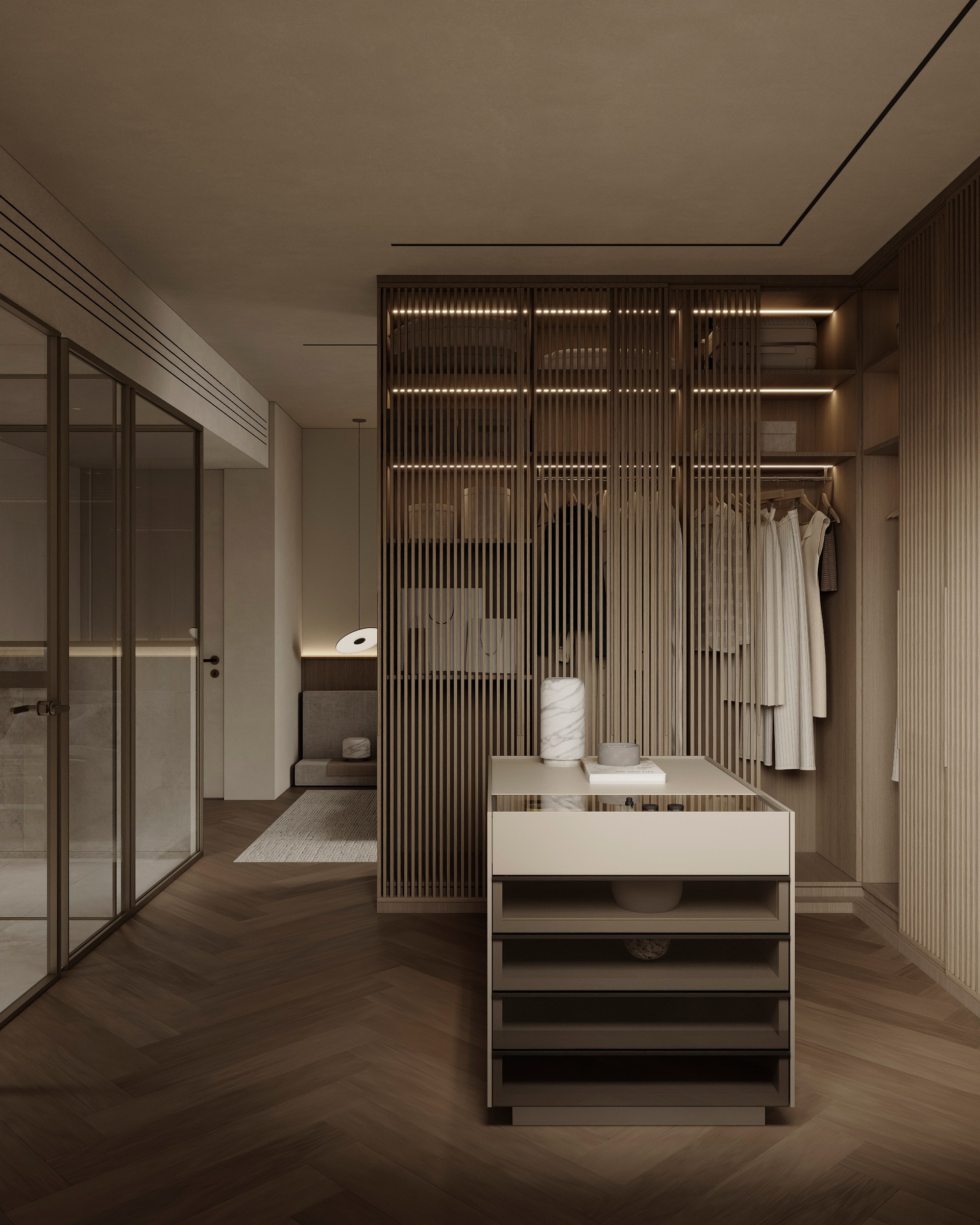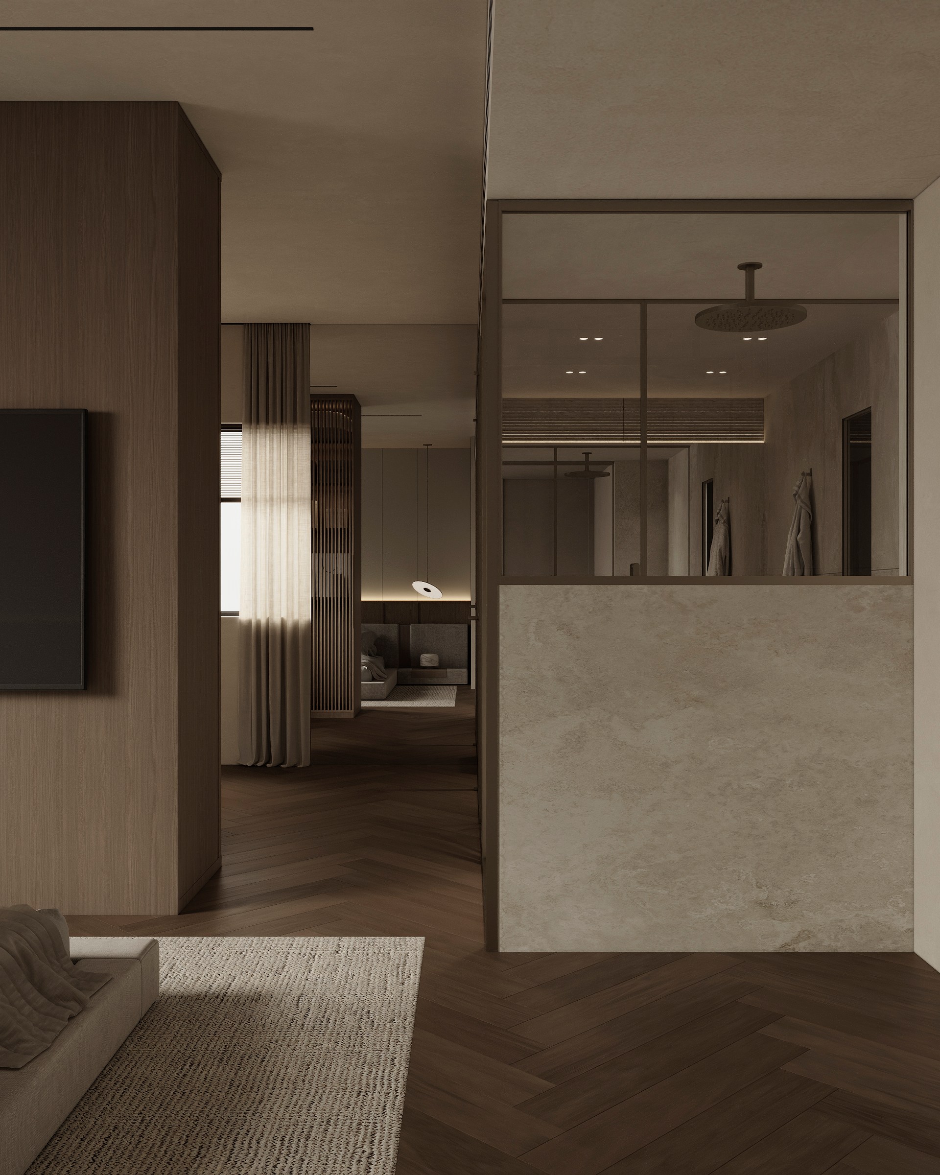 Luxury interior design project featuring sophisticated contemporary spaces with elegant materials and refined aesthetics.
