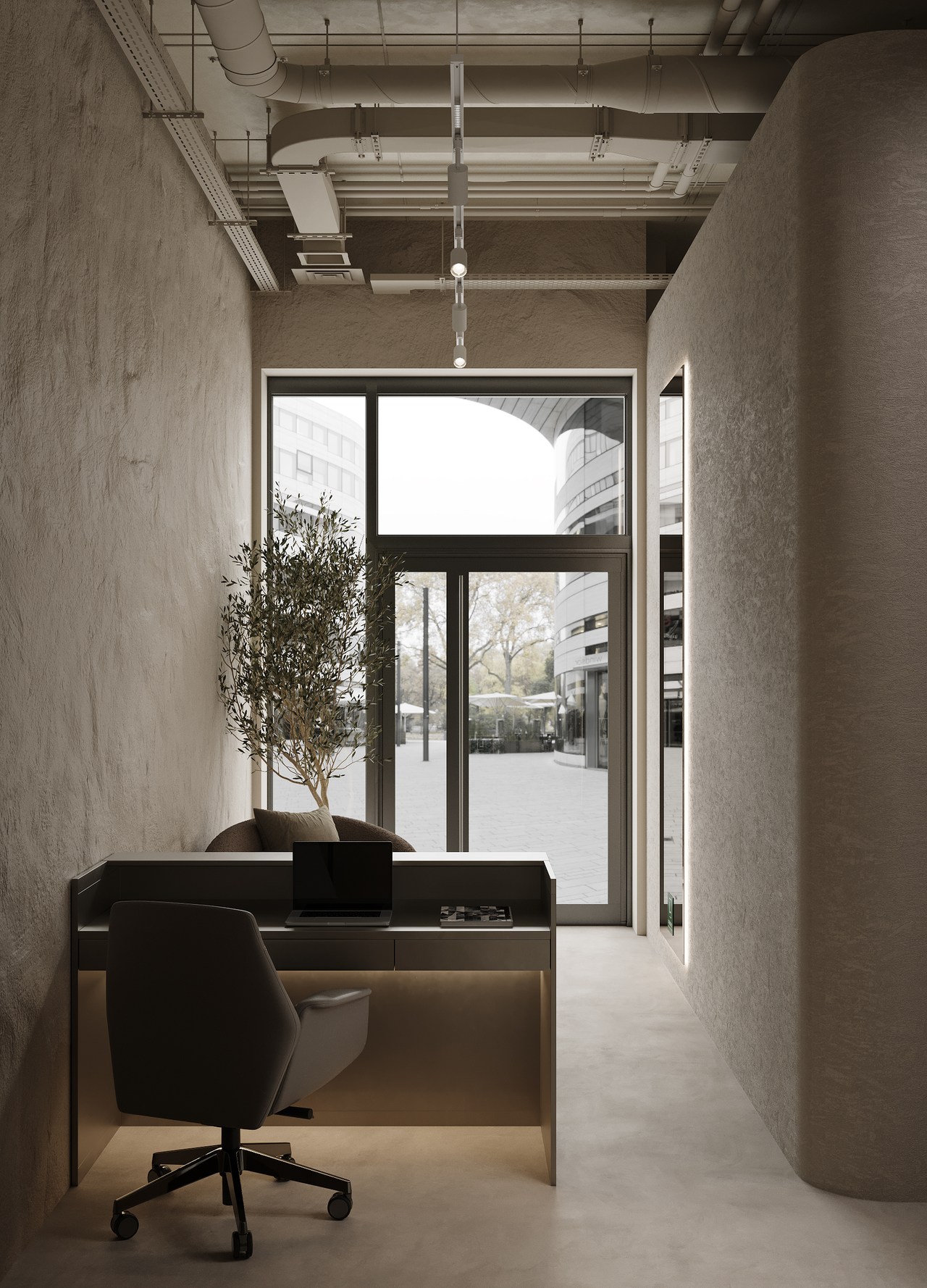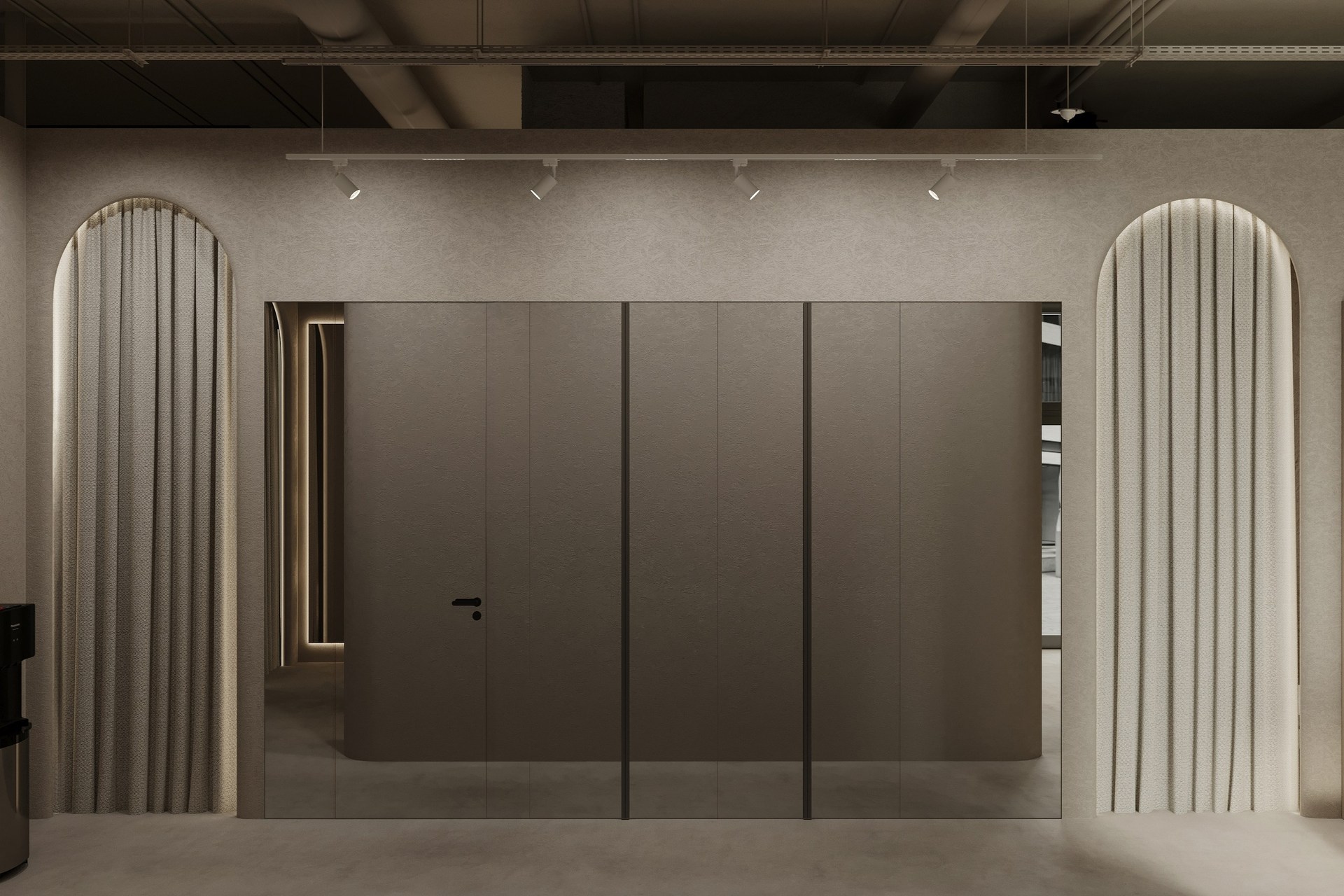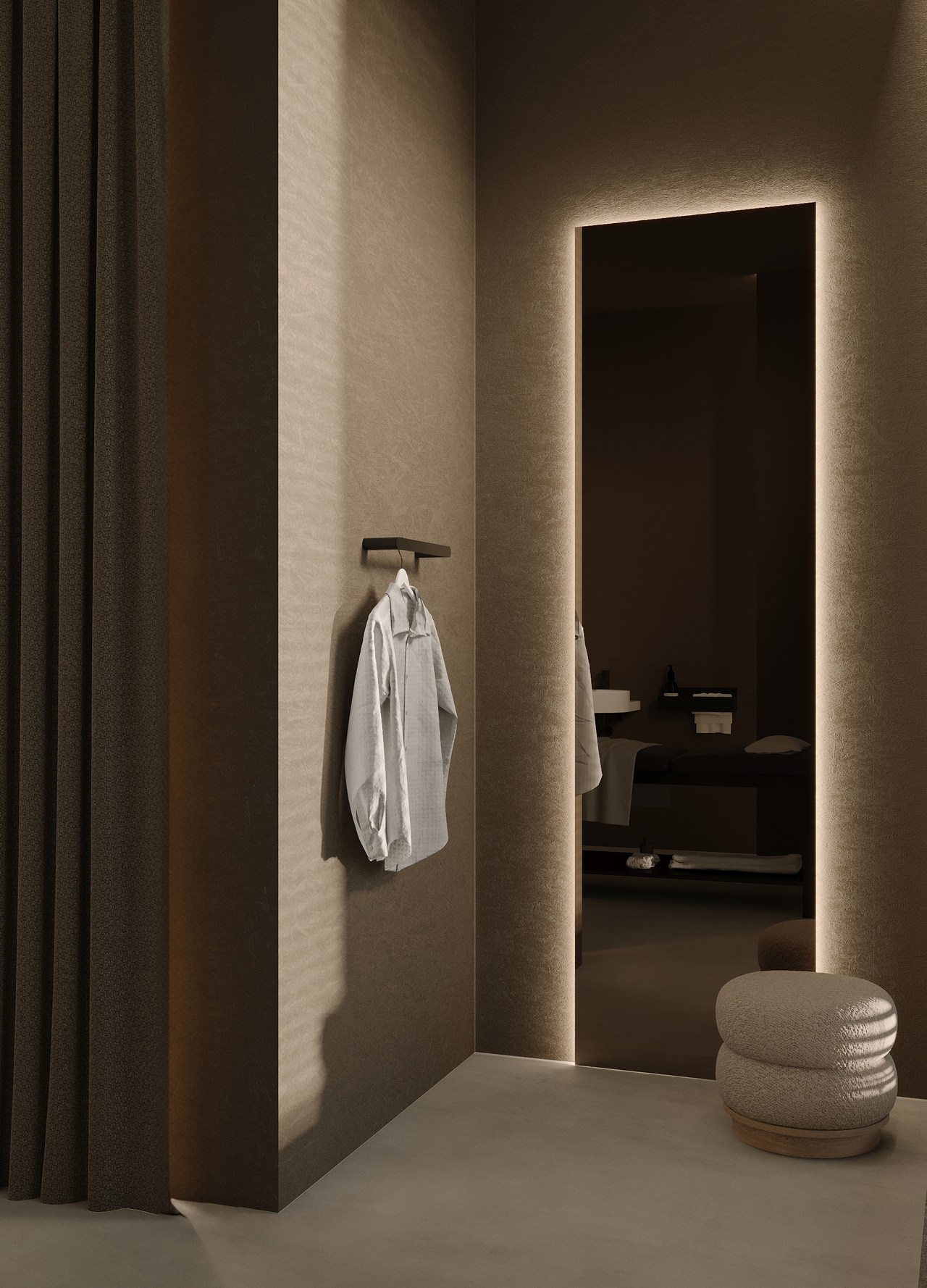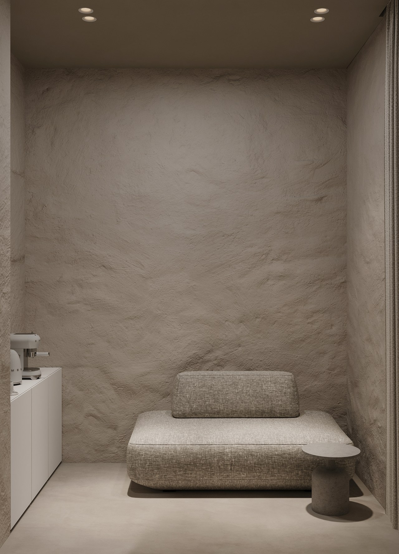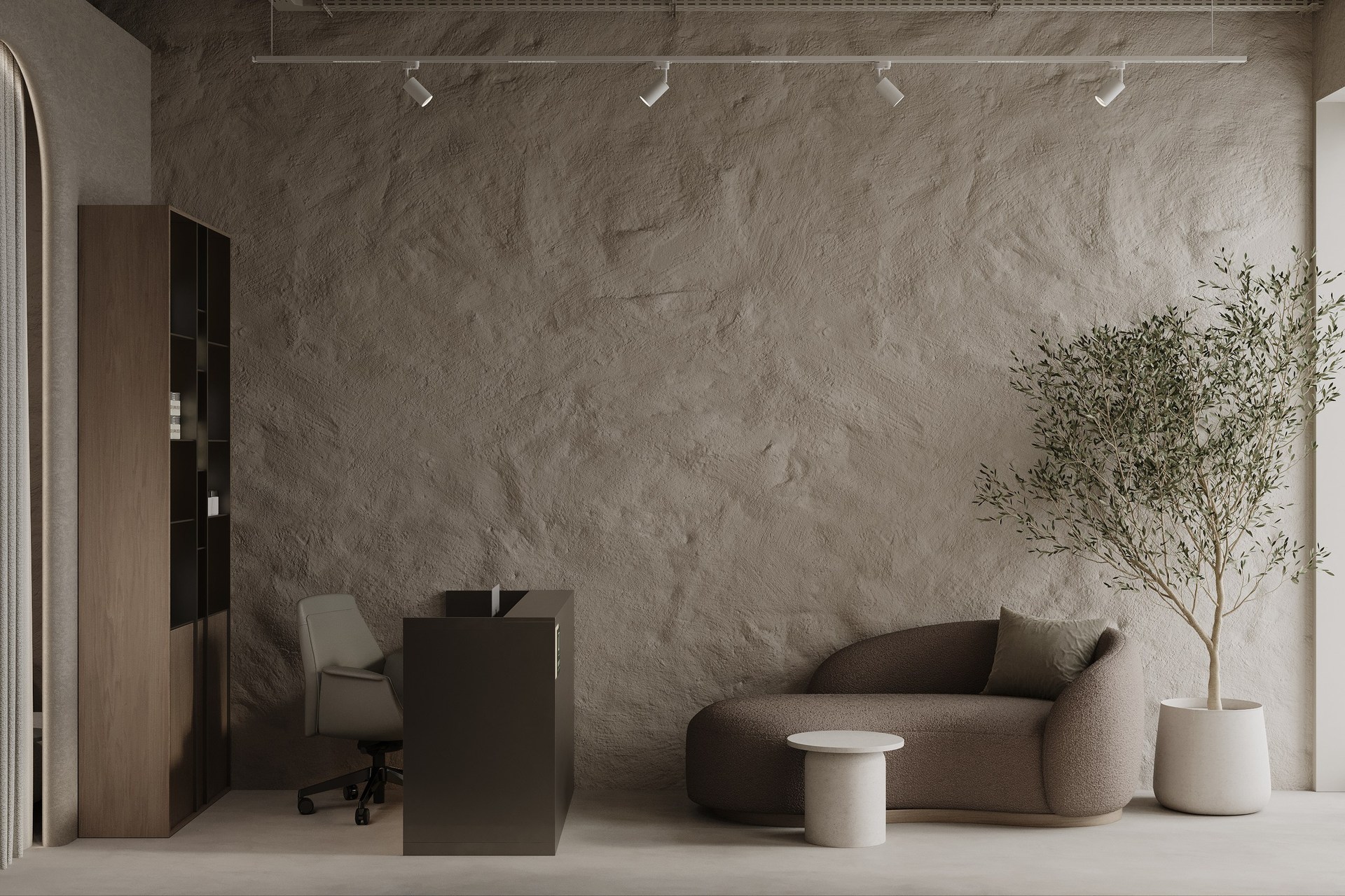 Professional interior visualization for a wellness studio, featuring specialized facial and body treatment rooms with a calming aesthetic.
