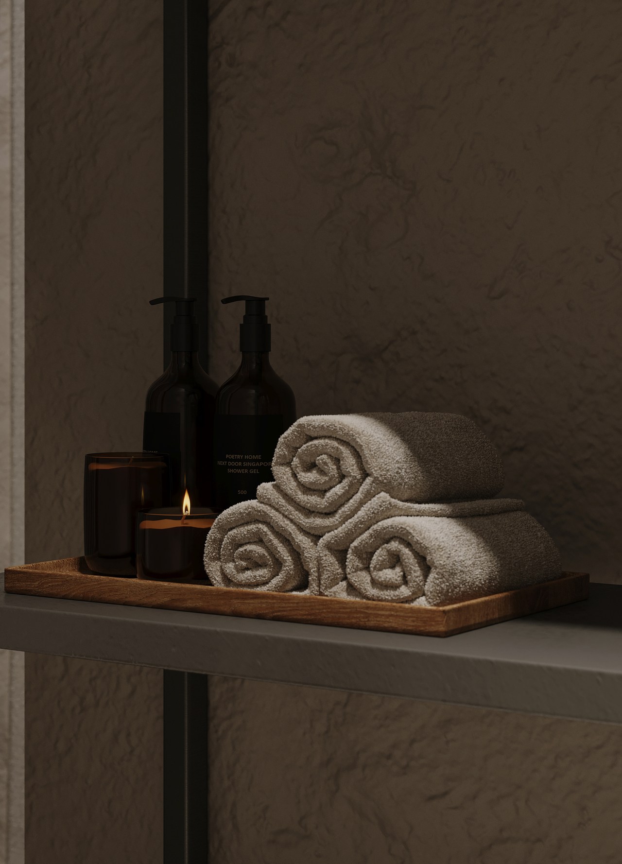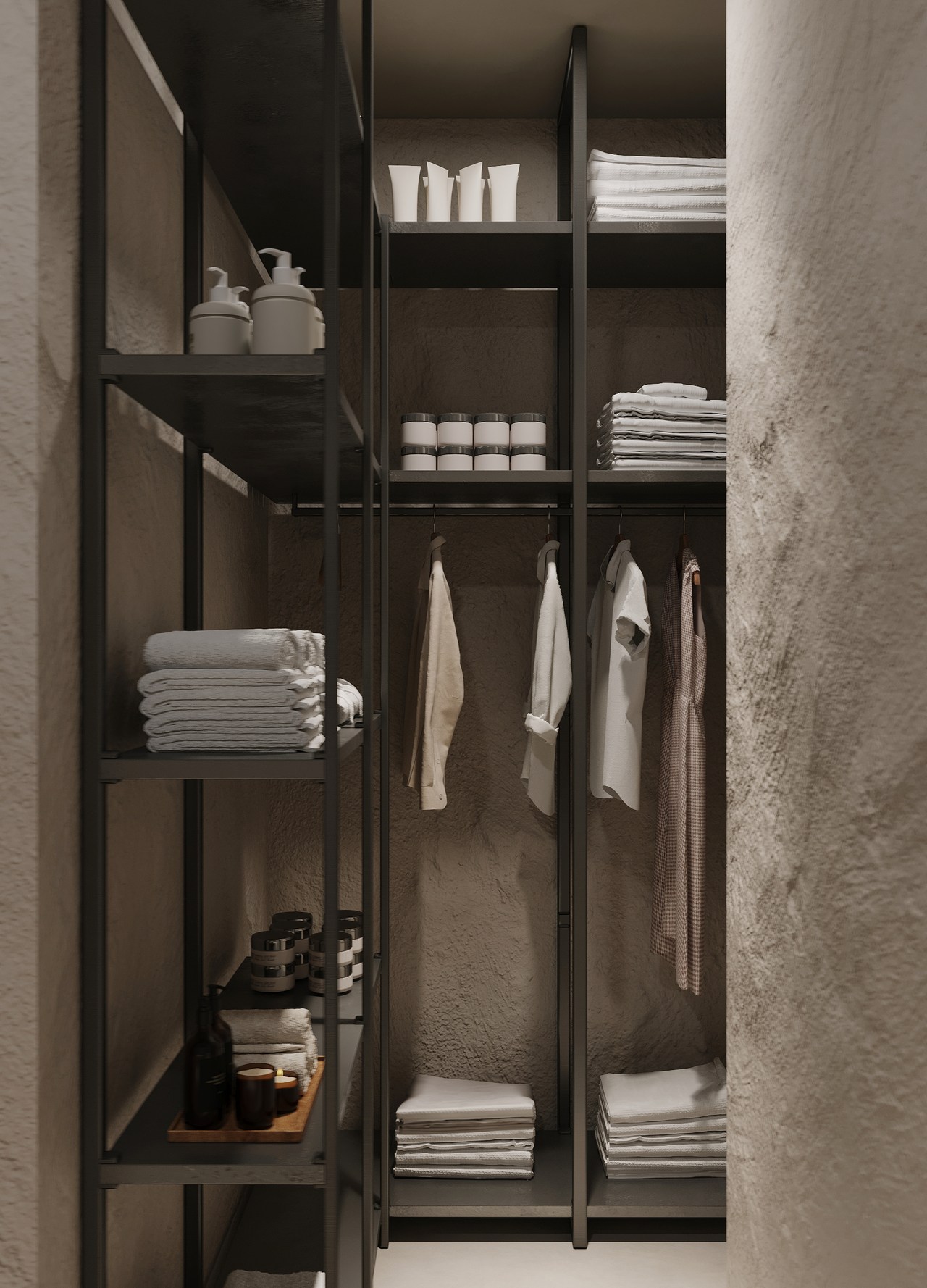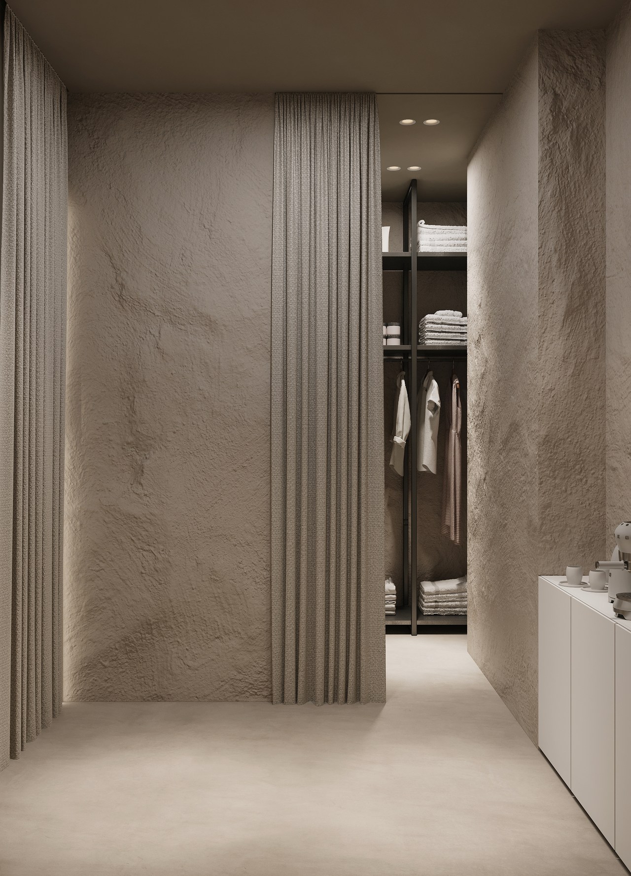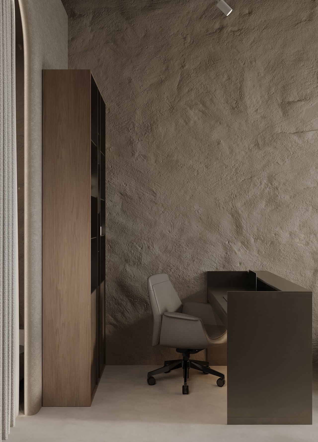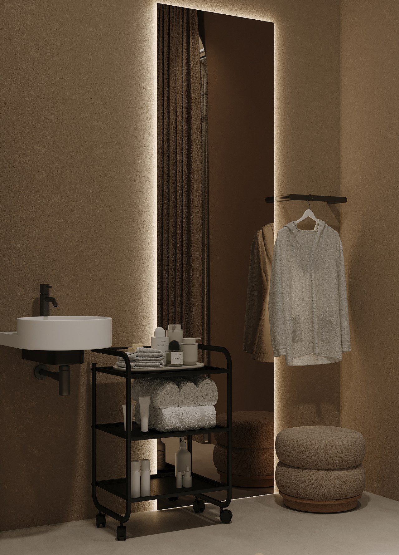 Professional interior visualization for a wellness studio, featuring specialized facial and body treatment rooms with a calming aesthetic.